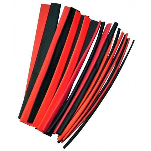 Izolačné zmršťovacie bužírky. Bužírky 20 cm dlhé, 10 ks červených a 10 ks čiernych v balení. Priemer bužírok od 2,5 do 16 mm. Asi 50% zmrštenie teplom. V balení nájdete 5 rôznych prierezov.O značke
