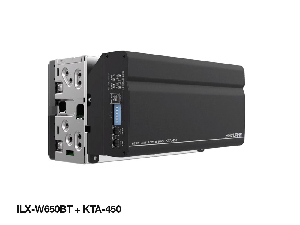 - Zvýšenie výkonu pre vašu hlavnú jednotku - doprajte svojej jednotke iLX-W650BT zosilnenie zvuku pomocou 4kanálového zosilňovača KTA-450, ktorý vydáva 4 x 50 W RMS. Vďaka exkluzívnej technológii Alpine Dynamic Peak Power (DDP) sa to môže dokonca zvýšiť na 100 W DDP na kanál počas dynamických hudobných pasáží.