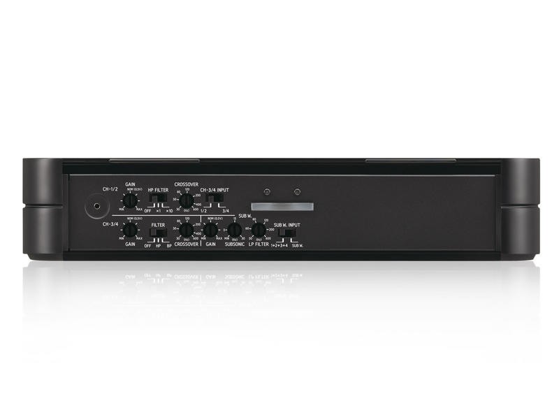 5kanálový zosilňovač, 4 x 100 + 1 x 500 / 2 x 200 na 4 Ω / 4 x 100 + 1 x 500 W RMS na 2 Ω, trieda D