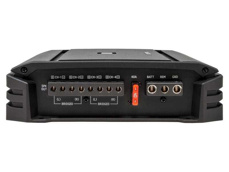 4kanálový zosilňovač, 4 x 55 + 2 x 160 na 4 Ω / 4 x 80 W RMS na 2 Ω, trieda D