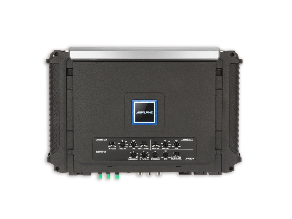 5kanálový zosilňovač, 4 x 120 / 2 x 350 na 4 Ω / 4 x 175 W RMS na 2 Ω, trieda D