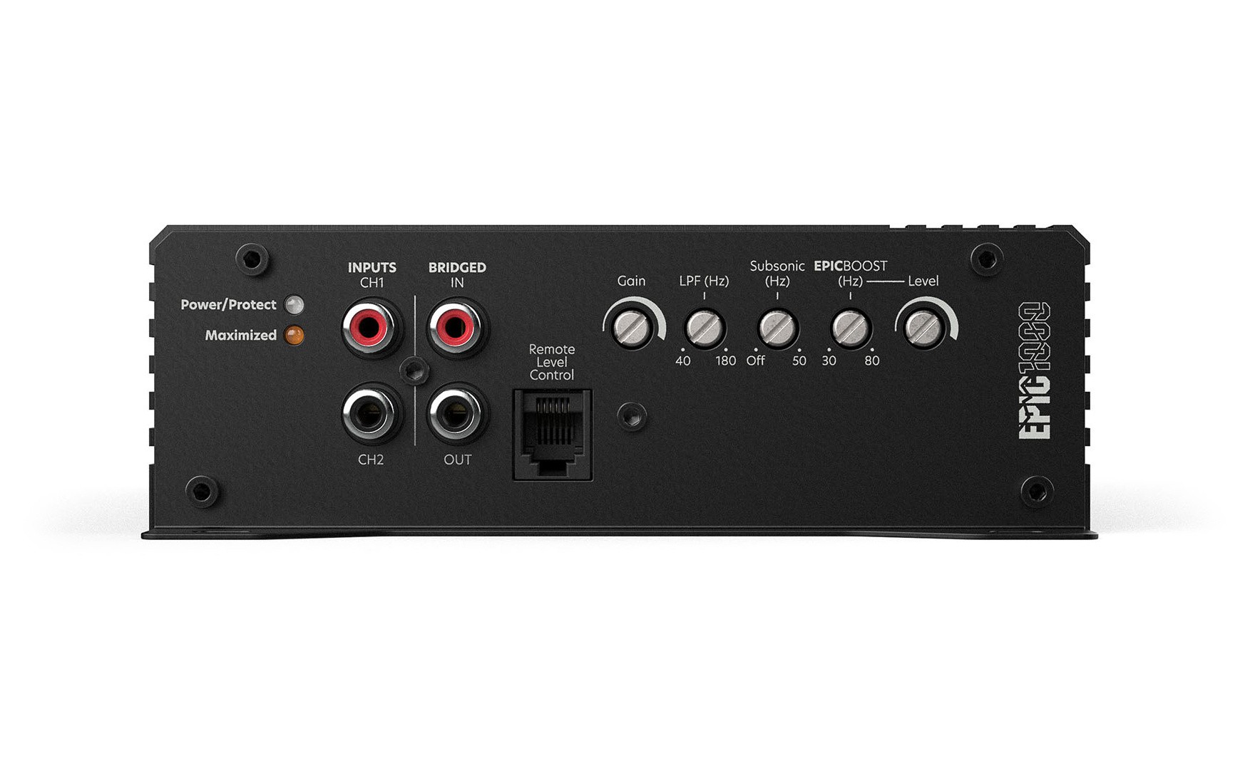 Zosilňovače radu EPIC od AudioControl kombinujú vysoký výkon, kompaktné rozmery a stabilnú prevádzku pri nízkej impedancii. Sú navrhnuté na pohon subwooferov a výkonných reproduktorov a vďaka digitálnej technológii triedy D poskytujú efektívny prenos energie aj pri náročnom zaťažení. Model EPIC1000 ponúka stabilitu až do 1 Ω, variabilné filtre a možnosť nastavenia basového zosilnenia, takže umožňuje presne doladiť basovú zložku podľa potreby. Súčasťou balenia je diaľkový ovládač ACR-E pre reguláciu úrovne basov priamo z miesta vodiča. Zosilňovač je ďalej vybavený ochrannými obvodmi proti preťaženiu, prepätiu, podpätí a prehrievaniu, čo zabezpečí spoľahlivý a dlhodobý prevádzku. Na inštaláciu sú pripravené masívne napájacie a reproduktorové svorky s pevnými skrutkovými spojmi. Epic500 je možné tiež prepojiť s procesorom The Epicenter Bass Restoration, ktorý rozširuje možnosti nastavenia a prejavu basov.