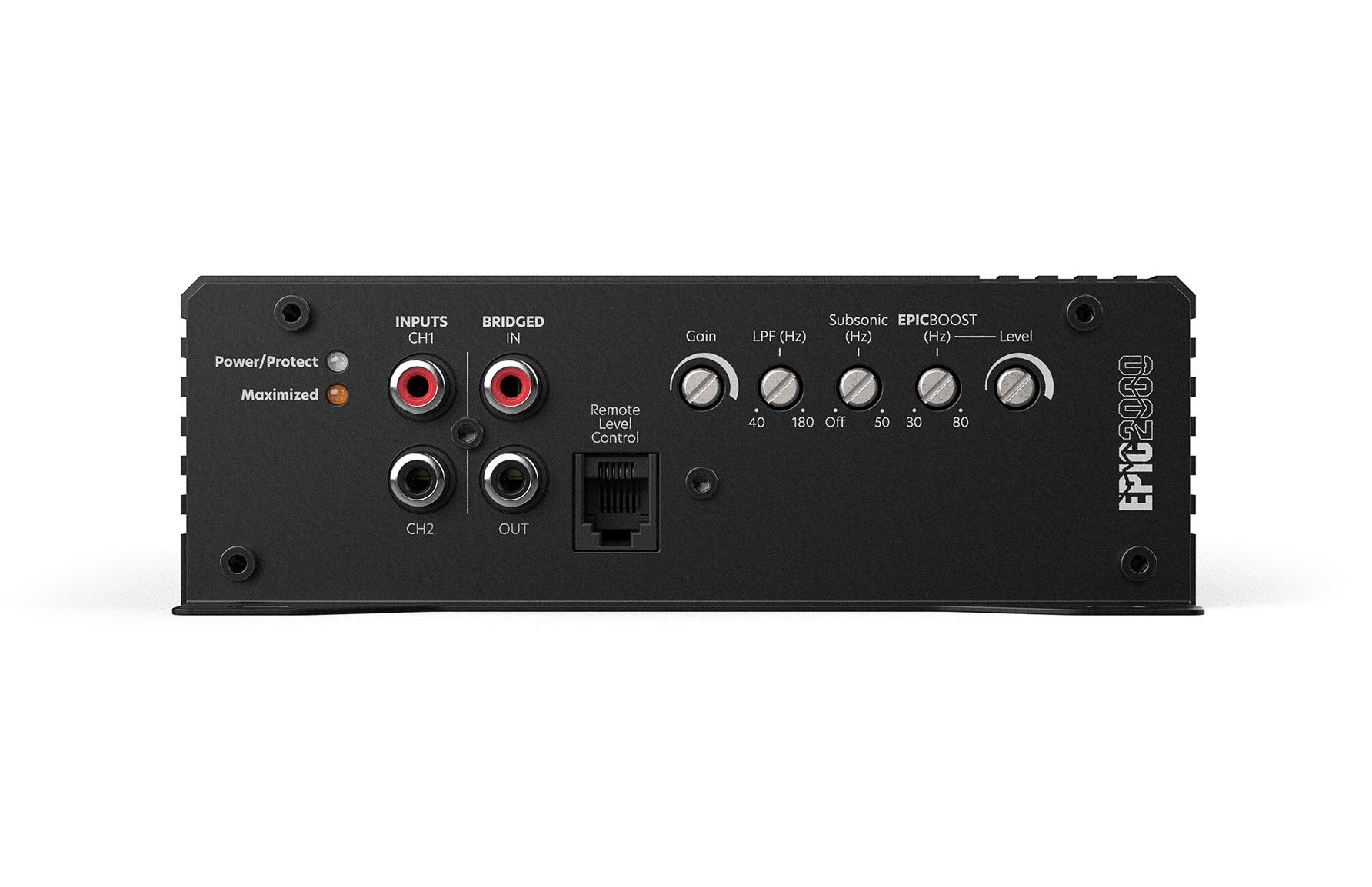 Zosilňovače AudioControl rady EPIC kombinujú vysoký výkon, kompaktné rozmery a stabilný chod pri nízkej impedancii. Sú navrhnuté pre pohon subwooferov a výkonných reproduktorov a vďaka digitálnej technológii Class-D poskytujú efektívny prenos energie aj pri náročnom zaťažení. Model Epic2000 ponúka stabilitu až do 1 Ω, variabilné filtre a možnosť nastavenia basového zvýraznenia, takže umožňuje presné doladenie basovej zložky podľa potreby. Súčasťou je diaľkový ovládač ACR-E pre reguláciu úrovne basov priamo z miesta vodiča. Zosilňovač je ďalej vybavený ochrannými obvodmi proti preťaženiu, prepätiu, podpätíu alebo prehriatiu, čo zaisťuje spoľahlivú a dlhodobú prevádzku. Pre inštaláciu sú pripravené masívne napájacie a reproduktorové terminály so skrutkovými spojmi. Epic500 je možné tiež prepojiť s procesorom Epicenter Bass Restoration, ktorý rozširuje možnosti nastavenia a prejavu basov.