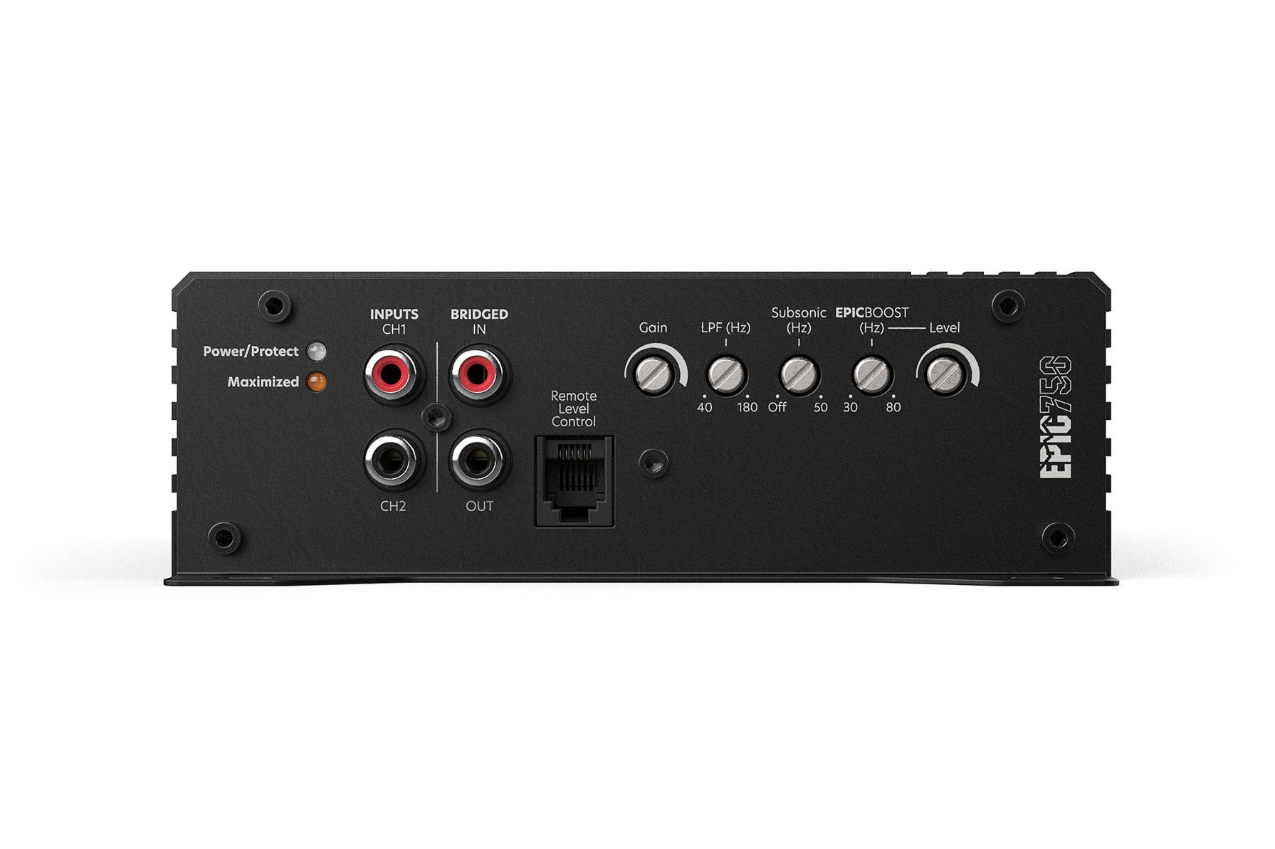 Zosilňovače AudioControl rady EPIC kombinujú vysoký výkon, kompaktné rozmery a stabilný chod pri nízkej impedancii. Sú navrhnuté na pohon subwooferov a výkonných reproduktorov a vďaka digitálnej technológii Class-D poskytujú účinný prenos energie aj pri náročnom zaťažení. Model Epic750 ponúka stabilitu až do 1 Ω, variabilné filtre a možnosť nastavenia basového zosilnenia, takže umožní presne doladiť basovú zložku podľa potreby. Súčasťou je diaľkový ovládač ACR-E na reguláciu úrovne basov priamo z miesta vodiča. Zosilňovač je ďalej vybavený ochrannými obvodmi proti preťaženiu, prepätiu, podpätiu alebo prehriatiu, čo zabezpečuje spoľahlivú a dlhodobú prevádzku. Pre inštaláciu sú pripravené masívne napájacie a reproduktorové terminály s pevnými skrutkovými spojmi. Epic500 je možné tiež prepojiť s procesorom The Epicenter Bass Restoration, ktorý rozširuje možnosti nastavenia a basového prejavu.