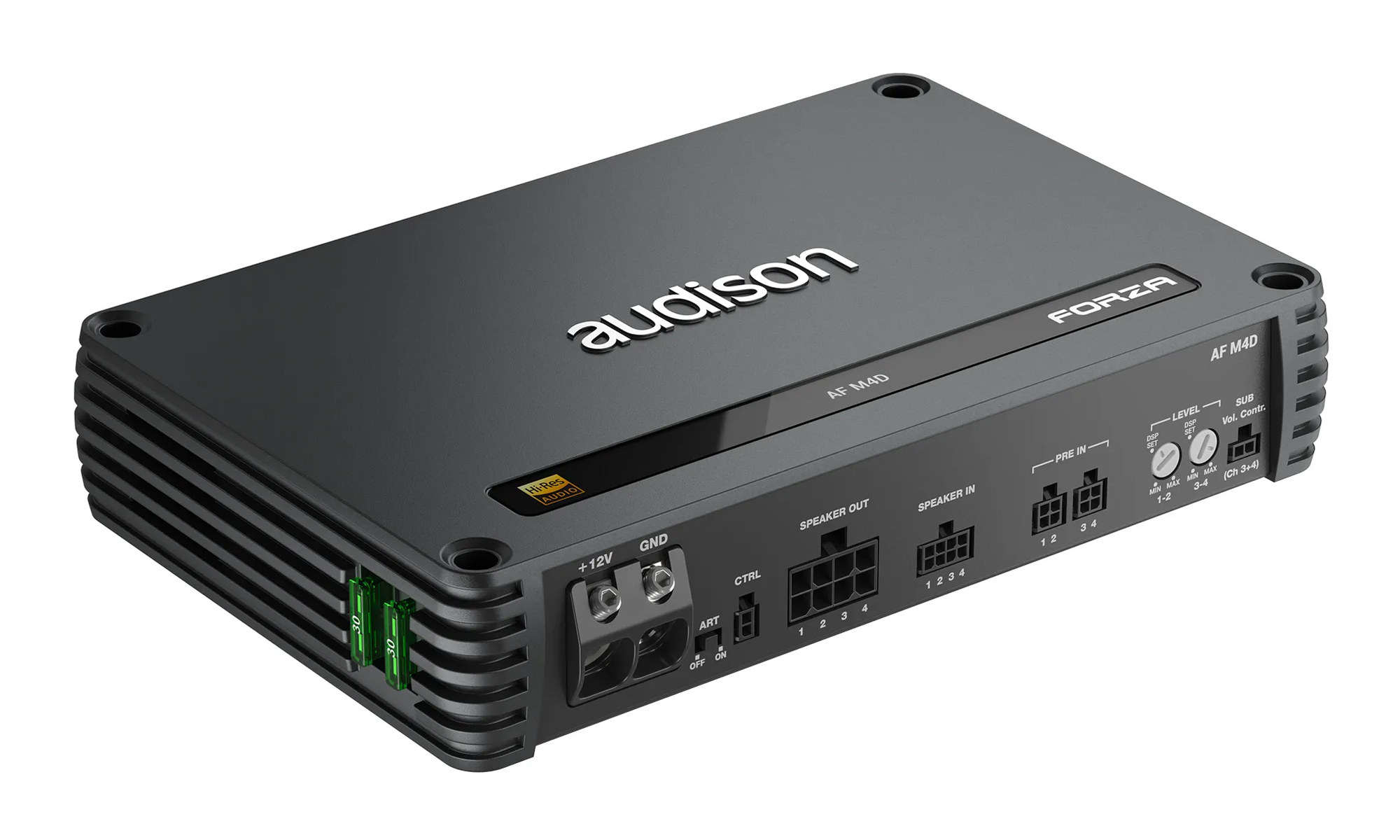 Zosilňovače Audison AF Forza sú navrhnuté tak, aby pridali výkonné kanály zosilňovača k zosilňovačom bit procesora AF. Súčasťou dodávky je kábel na vstup signálu plug & play, ktorý uľahčuje pripojenie k bit zosilňovačom AF. Samostatné zosilňovače AF sú tiež perfektné na použitie so systémami riadenými a spravovanými samostatným bit procesorom, ako je bit One HD Virtuoso. AF zosilňovače majú architektúru „priameho drôtu“, bez funkcií analógového predzosilňovača, ako je filtrovanie výhybiek, a sú určené na použitie s externými procesormi. AF M4D sa môže pochváliť štyrmi vysoko vernými zosilnenými kanálmi 160W x 4 na 4Ω*, 260W x 4 na 2Ω* s audiofilským zvukom najnovšej generácie technológie Audison D-Class. Vyššia spínacia frekvencia, strmšie filtrovanie a komponenty s vyššou toleranciou poskytujú zvuk nad rámec očakávania triedy D - v úžasne kompaktnom balení! Zvukové pásmo je rozšírené až na 40 kHz a získava vytúženú certifikáciu High-Resolution. Výsledkom premostenia párov kanálov je 520W x 2 na 4Ω*, čo zaručuje flexibilný a silný výkon.