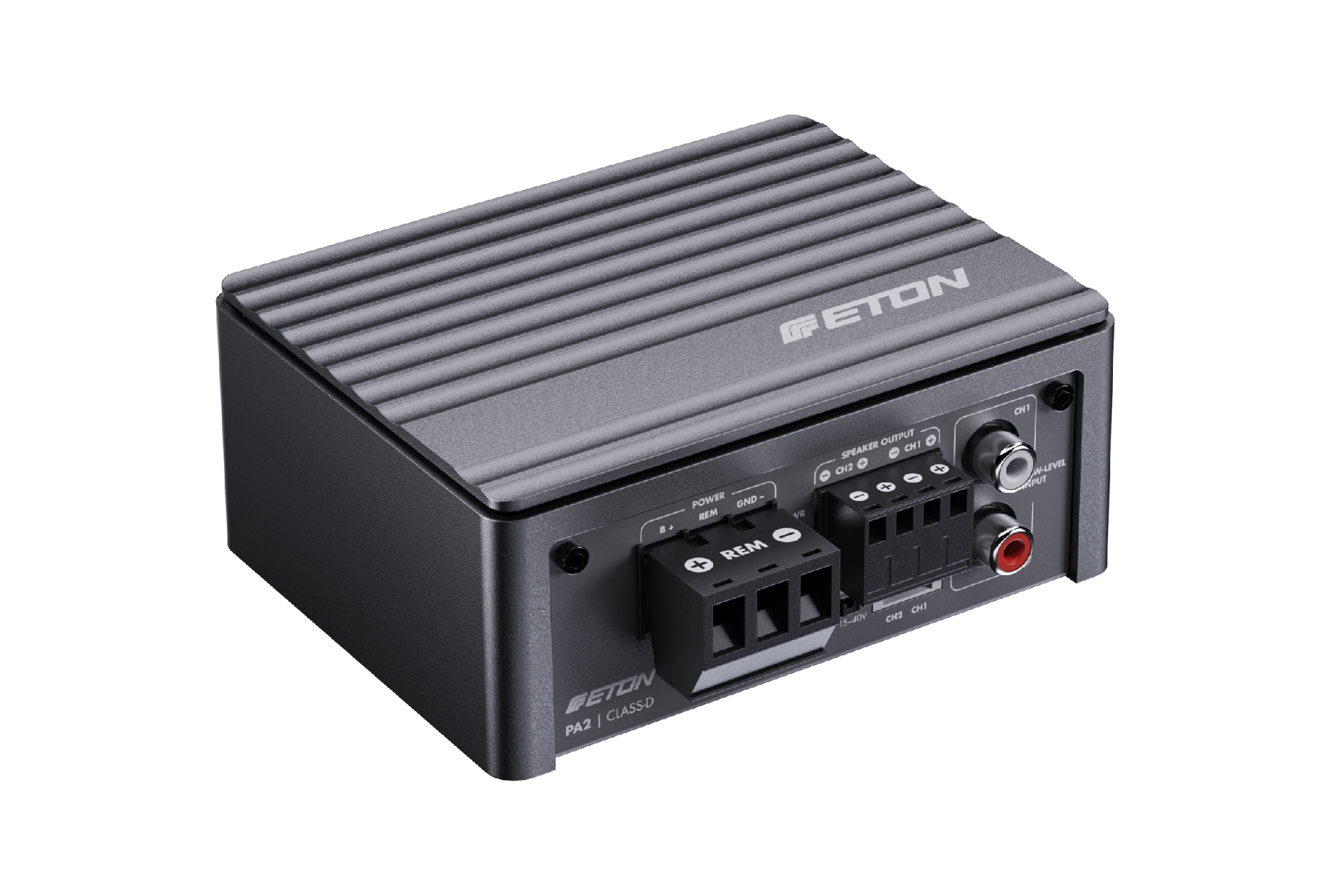 Ultrakompaktné, flexibilné a výkonné – nové PA zosilňovače sú nástupcami série zosilňovačov ETON MICRO, ktorá získala množstvo ocenení. Monoblok PA 1, dvoj a štvorkanálové modely PA 2 a PA 4 sú úplne novo vyvinuté a zameriavajú sa na optimálny výkon pri čo najmenších rozmeroch umožňujúcich jednoduchú inštaláciu. Malý, menší PA s minimálnymi rozmermi 110 x 85 x 45 mm (PA 2), 2-kanálový zosilňovač možno flexibilne integrovať do akéhokoľvek vozidla. Rada PA ponúka najkvalitnejšiu elektroniku v nádherne navrhnutom puzdre z jednoduchého tlakového hliníkového odliatku, eloxovanom v matnom bronzovom prevedení. Hliníkové liate puzdra fungujú celým svojím povrchom ako chladiče, čo zaisťuje vysoko účinný tepelný manažment. Horná doska je odnímateľná. Zosilňovače PA ponúkajú horné ovládanie, pričom všetky možnosti nastavenia sú prístupné z hornej strany zosilňovača, ale po dokončení nastavenia sú skryté pod hornou doskou. Pokrýva všetky potreby nastavenia, na ktoré si možno spomenúť: vysokofrekvenčné a nízkofrekvenčné filtre, subsonický filter (PA 1), nastaviteľné vysokoúrovňové vstupné napätie, nastaviteľný vysokoúrovňový vstupný odpor (záťaž EPS) a ovládanie zisku. Zosilňovače PA aj naďalej zaujmú drobnými, ale praktickými konštrukčnými vychytávkami, ako je nástroj na nastavenie, ktorý je integrovaný do chladiča, pre nekomplikované vykonanie nastavení. Odnímateľné konektory napájania a audio signálu a variabilné montážne nožičky dopĺňajú premyslenú sadu funkcií rady PA. Ďalším bonusom je stohovateľná konštrukcia zosilňovačov pre inštaláciu dvoch identických modelov zosilňovačov na seba. Vnútorné hodnoty sú nemenej pôsobivé - viacvrstvové dosky, vysoko kvalitné elektronické súčiastky a prvotriedna výroba tvoria základ pre nasadené pokročilé obvody zosilňovača triedy D, ktoré sú vysoko účinné. Ponúka špičkový SQ pre náročných poslucháčov, pri najnižšom skreslení a najvyššej kontrole. Či už ide o štvorkanálový zosilňovač pre prevádzku automobilového audio systému, alebo monoblok pre výkonné subwoofery - rada PA ponúka ten správny zosilňovač pre každú požiadavku a použitie.