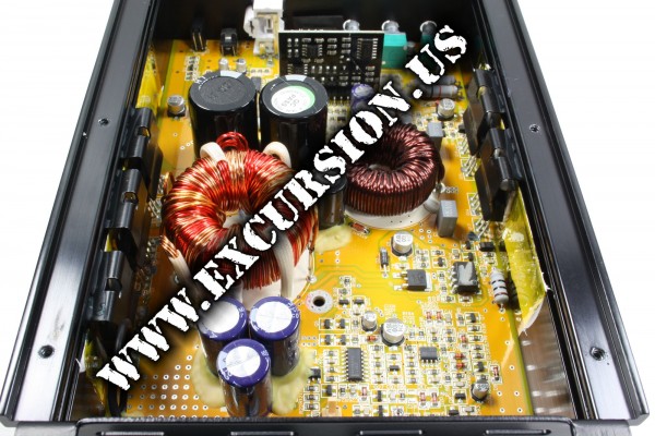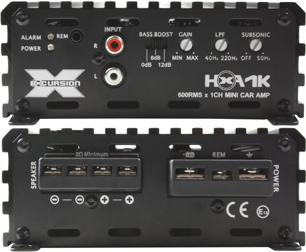 monoblok, 600 W RMS na 2 Ω, trieda D, vysokoúrovňový vstup
