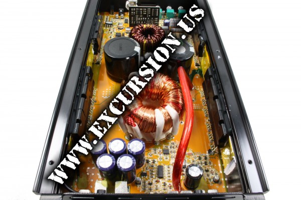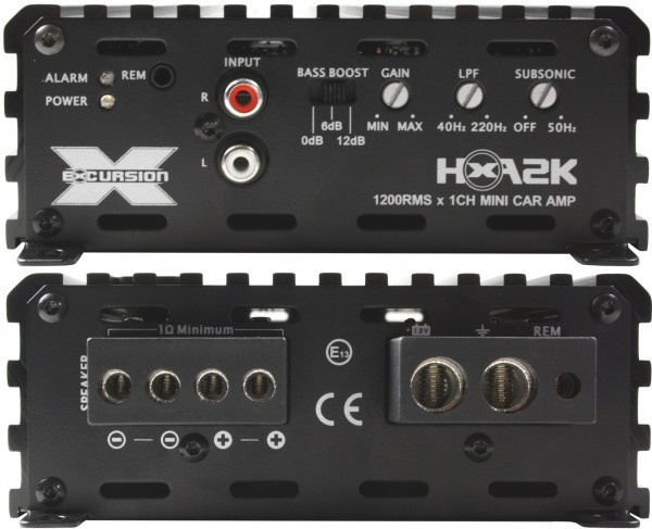 monoblok, 1200 W RMS na 1 Ω, trieda D, vysokoúrovňový vstup