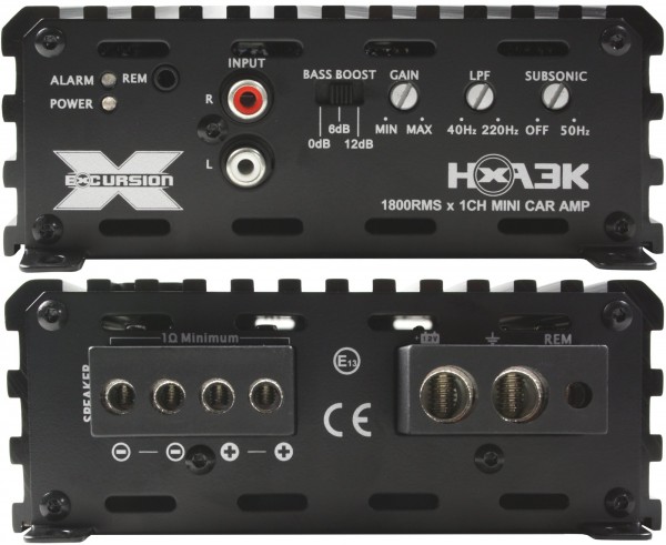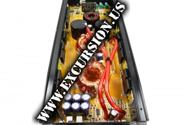 monoblok, 1800 W RMS na 1 Ω, trieda D, vysokoúrovňový vstup