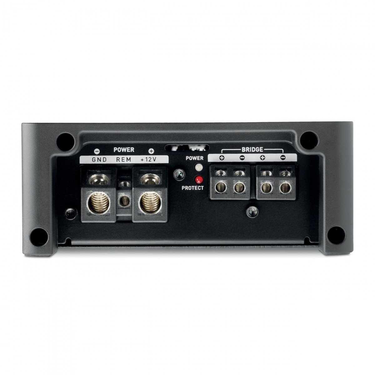2 kanálový, 2 x 220 / 1 x 770 na 4 Ω / 2 x 385 W RMS na 2 Ω, trieda D, vysokoúrovňový vstup