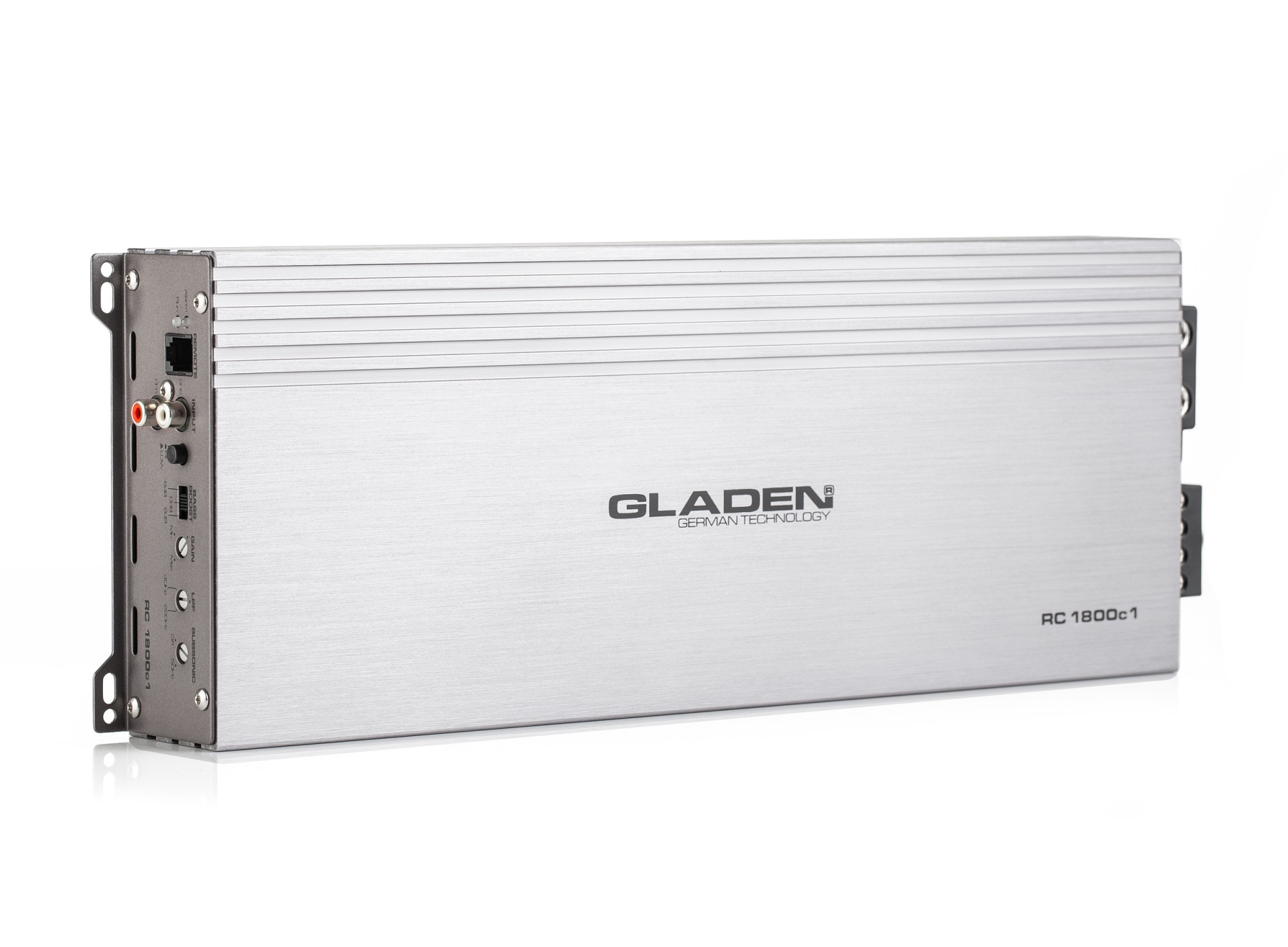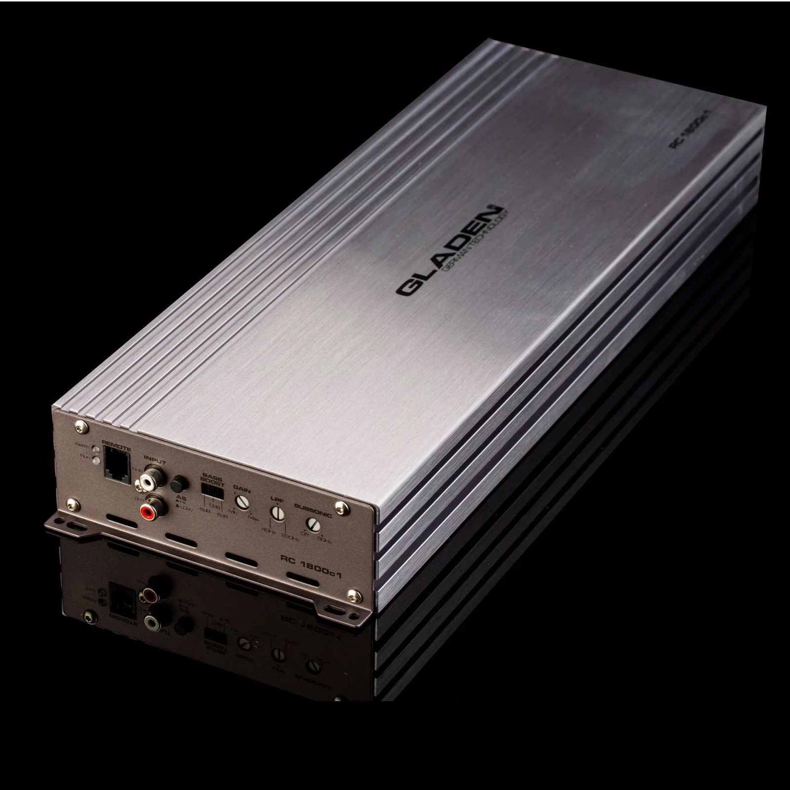 Kvalitný zosilňovač tvorí základ každého autohifi systému. Je schopný preniesť hudbu do reproduktorov s vysokou a nezmenenou dynamikou. Zosilňovače RC Line sú vyvinuté a vyrobené na rovnako vysokom štandarde ako všetky produkty spoločnosti Gladen. S praktickým vybavením, ako je výhybka alebo vysokoúrovňové vstupy, tvoria RC zosilňovače Gladen dôležitý základný kameň vášho automobilového hifi systému. Aby bol rad zosilňovačov Gladen RC kompletný, je potrebné ponúknuť aj výkonovo silný monoblok za rozumnú cenu. Na tieto účely vznikol model Gladen RC 1800c1, ktorý má výkon na 1 ohm 1,8 KW RMS, čo je v danej cenovej kategórii veľmi dobrá ponuka. Zosilňovač má navyše integrovaný High/Low prevodník s funkciou Auto Sense a možnosť pripojenia diaľkového ovládača.