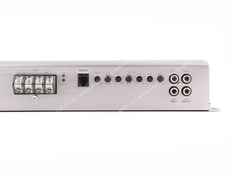 2kanálový, 2 x 285 / 1 x 940 na 4 Ω / 2 x 470 / 1 x 1500 W RMS na 2 Ω, trieda AB, vysokoúrovňový vstup