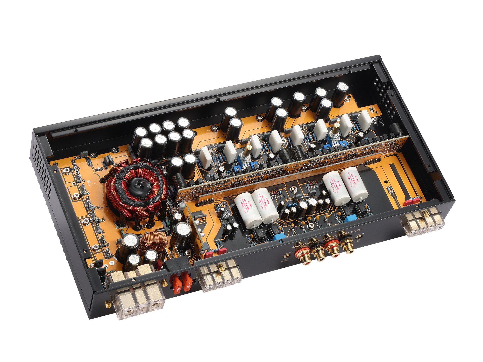 - Prémiové audio kondenzátory MUNDORF® a kvalitné výstupné tranzistory.