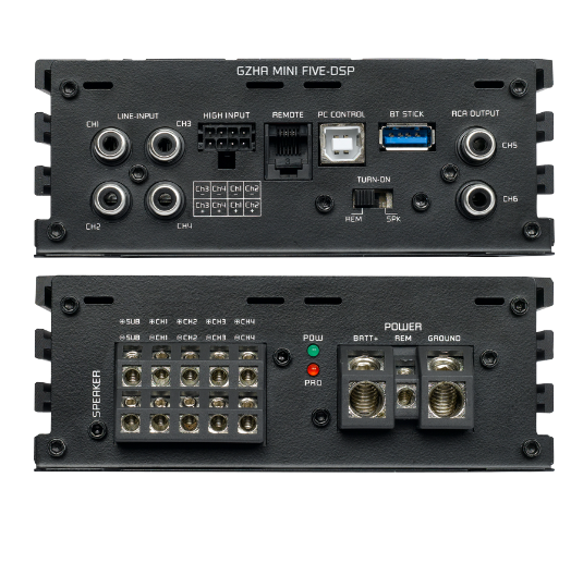 Prostredie vo vozidle vždy neponúka priaznivé podmienky a vhodné montážne pozície pre reproduktory. Nepresnú reprodukciu zvuku však možno opraviť pomocou technológií DSP. Výhoda technológie DSP je dostupná aj ako vstavaná funkcia u niektorých zosilňovačov. Produkty radu HYDROGEN zodpovedajú požiadavkám vysoko sofistikovaných zákazníkov. Úžasný výkon, skvelá kvalita zvuku a vysoké SPL, kedykoľvek je potreba. Subwoofery boli vyvinuté tak, aby zvládli obrovské množstvo vstupného výkonu dosahujúce extrémne vysoké úrovne basov, aby ich bolo možné úspešne použiť aj v podmienkach súťaže. Zodpovedajúci 2pásmový komponentný reproduktorový systém a rad MINI zosilňovačov s kompaktnými rozmermi pre obmedzený inštalačný priestor dopĺňajú tento slávny rad GROUND ZERO. Ground Zero GZHA MINI FIVE-DSP je 5kanálový zosilňovač s vysoko účinným obvodom triedy D, integrovaným 8kanálovým DSP a kompaktnými rozmermi.