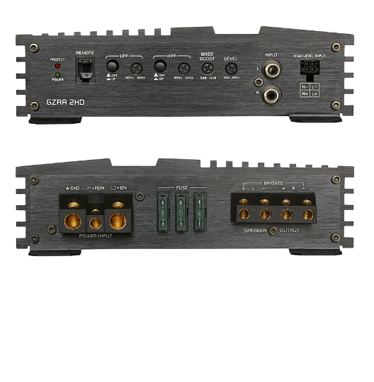 Zosilňovače radu RADIOACTIVE ponúkajú úžasne vysoký výstupný výkon až 6000 W v režime Link-Mode, zabalené v štýlovom chladiči titánovej farby, ktorý obsahuje širokú škálu praktických funkcií na dokonalé nastavenie zvuku. V modernom automobilovom prostredí môže byť priestor na inštaláciu audio systému aj veľmi obmedzený. Z tohto dôvodu rad RADIOACTIVE obsahuje najmenšie zosilňovače GROUND ZERO, aké boli kedy vyrobené. Zosilňovače radu GZRA MICRO umožňujú nekomplikovanú a priestorovo úspornú inštaláciu a ponúkajú všetky potrebné filtre na úpravu zvuku. Ground Zero GZRA 2HD je dvojkanálový zosilňovač s obvodmi triedy D, integrovaným širokopásmovým aktívnym prepínaním a ovládaním zosilnenia basov.