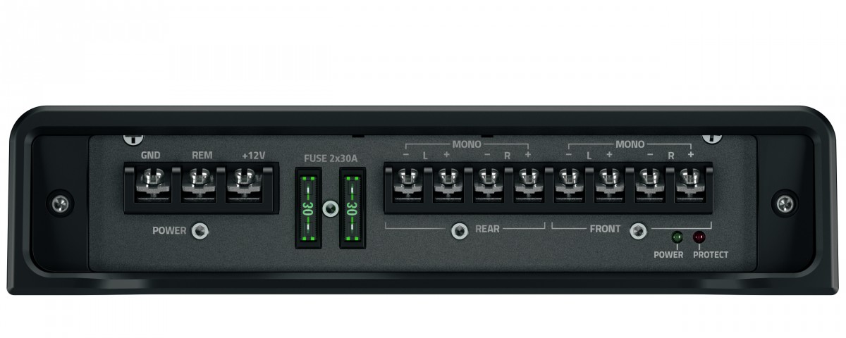 - Mono prevádzkový režim pre vytvorenie trojkanálového systému sub + front alebo výkonného dvojkanálového systému.