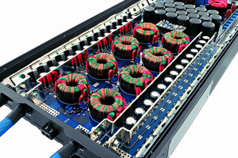 - Aby bolo možné dodať tak mimoriadne vysoký výkon, fáza napájania obsahuje 8toroidných transformátorov a sekundárne kondenzátory s kapacitou 200 V.