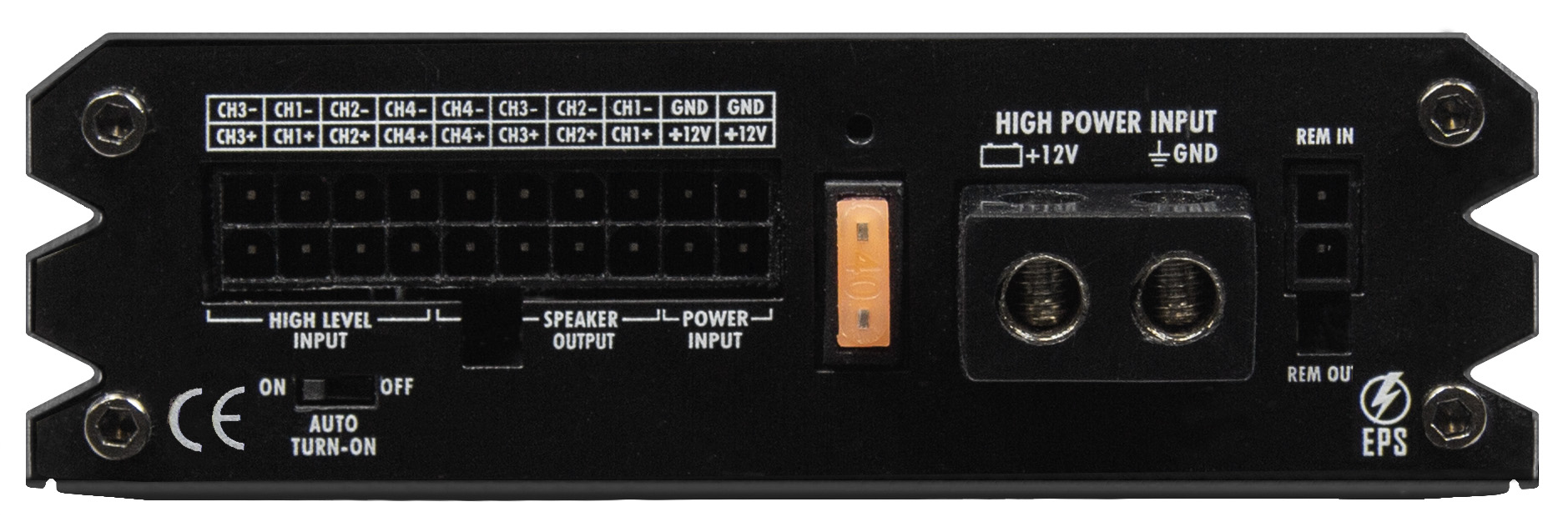 4kanálový zosilňovač s DSP, 4 x 75 (4 Ω) / 4 x 115 W RMS (2 Ω), trieda D