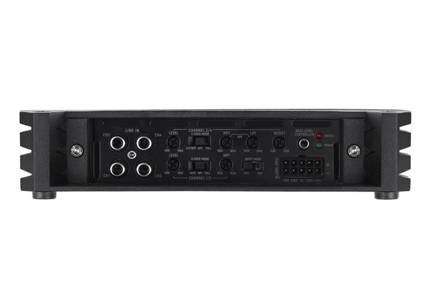 | RMS výkon na 4 ΩRMS výkon pri zaťažení reproduktorov alebo subwoofera na 4 Ω. RMS výkon je stály výkon zosilňovača a je to jeden z najdôležitejších parametrov pri výbere zosilňovača. | 4 x 85 / 2 x 250 W |