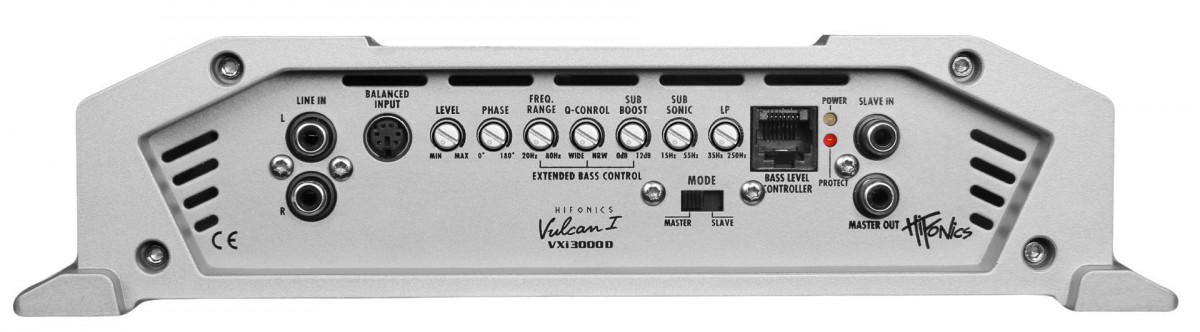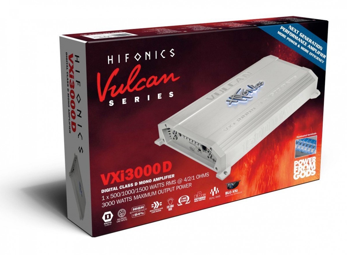 Základný rad zosilňovačov Hifonics Vulcan s jemne podsvieteným logom. Pre tých s obmedzeným rozpočtom a túžbou mať v aute svoju obľúbenú značku zosilňovačov, Hifonics.