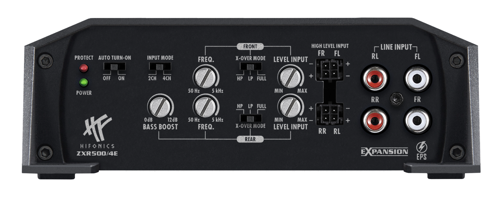 ZXR500/4E je veľmi kompaktný zosilňovač poskytujúci dobrý výkon aj kvalitný zvukový prejav. Vďaka vysokoúrovňovým vstupom, funkcii automatického zapnutia (Auto Turn-On) a nastaviteľným výhybkám až do 5 kHz je veľmi univerzálny a ľahko sa integruje do rôznych systémov. Vďaka technológii EPS® (Error Protection System) je navyše plne kompatibilný aj s modernými vozidlami vybavenými diagnostickými systémami.