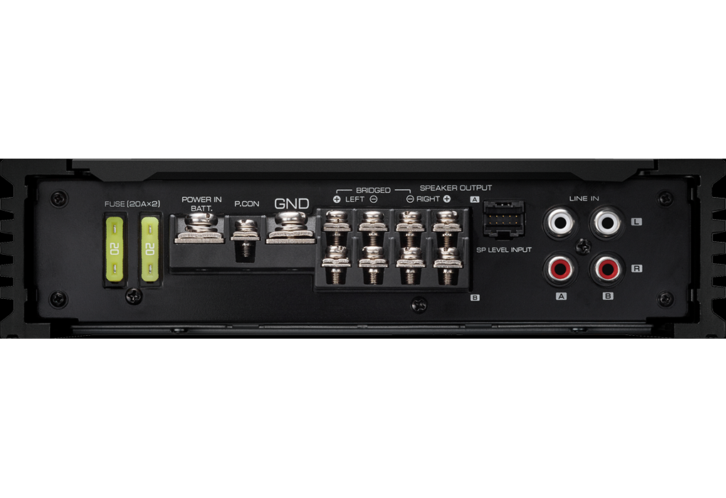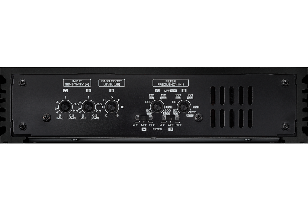 4kanálový, 4 x 50/2 x 150 na 4 Ω / 4 x 75 RMS na 2 Ω, trieda D