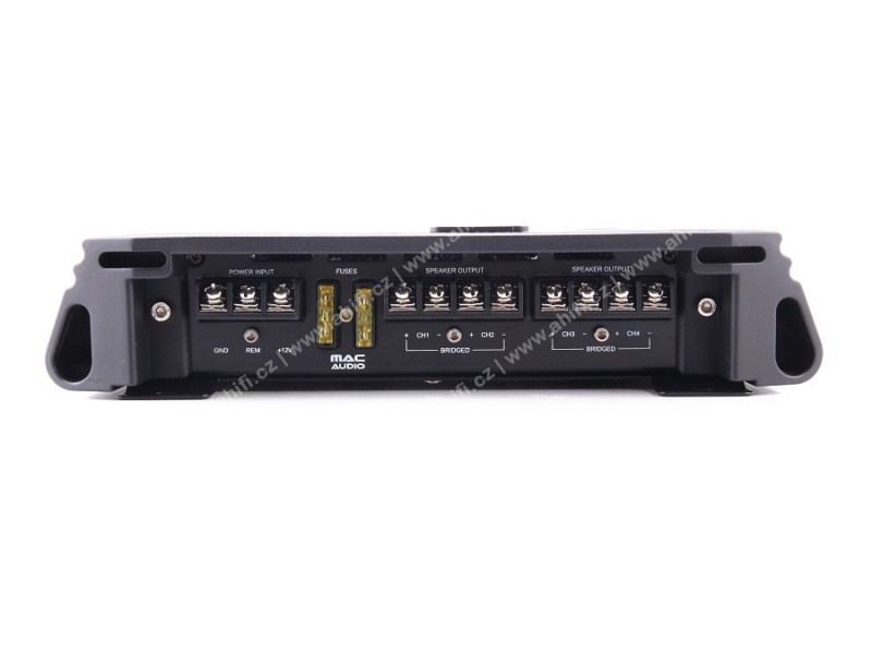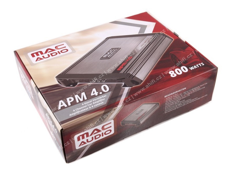 Tento 4-kanálový zosilňovač z radu APM poskytuje maximálny výkon 4 x 200 W v rozsahu frekvencií od 5 Hz do 50 kHz. Design v štýlovom Mac Audio kabáte. Vo výbave nájdete veľmi dôležité vstupy a výstupy na nízkej úrovni, rovnako ako vstupy na vysokú úroveň (hi input), s prepínateľným bass boostrom (6 alebo 12 dB pri 45 Hz ). Súčasťou výbavy je i plynule nastaviteľný filter pre horný a dolný priepust. Zosilňovač má ochranu proti skratu a tepelný senzor. Vďaka naddimenzovanému chladiču nebude dochádzať k prehrievaniu zosilňovača ani v horúcich letných dňoch.