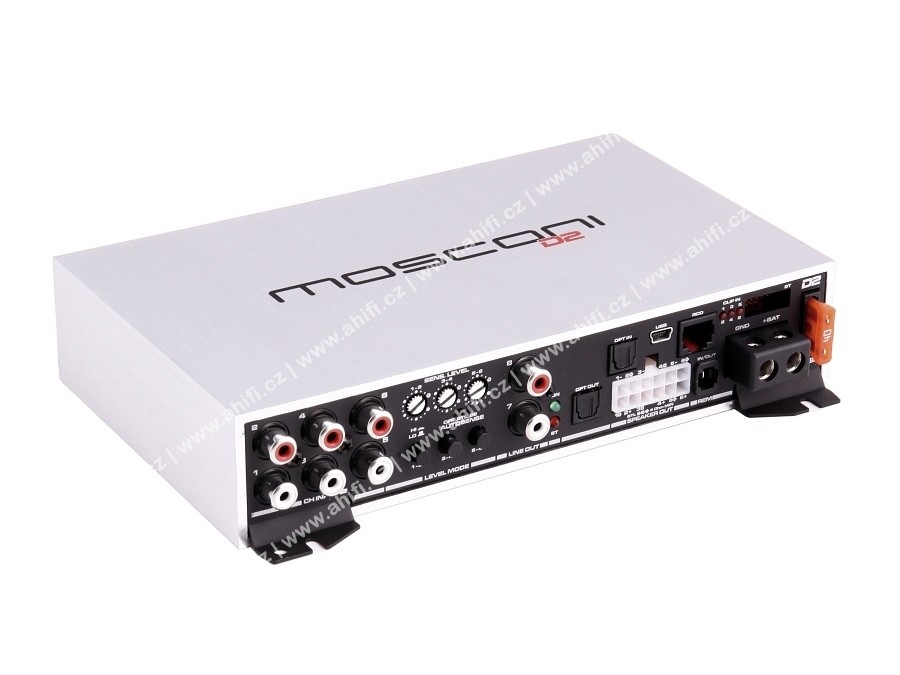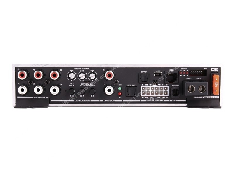 Malý digitálny zosilňovač so vstavaným DSP procesorom. Málokto na svete toto vôbec dokáže ponúknuť. Vo výbave zosilňovača nesmie chýbať ani kvalitný high/low adaptér s funkciou Auto Sense, pre jednoduché napojenie na originálne autorádiá. Zosilňovače Mosconi Gladen D2 držia svetový rekord v pomere veľkosť/výkon. Skvele spracovaný a vyrobený v Taliansku.