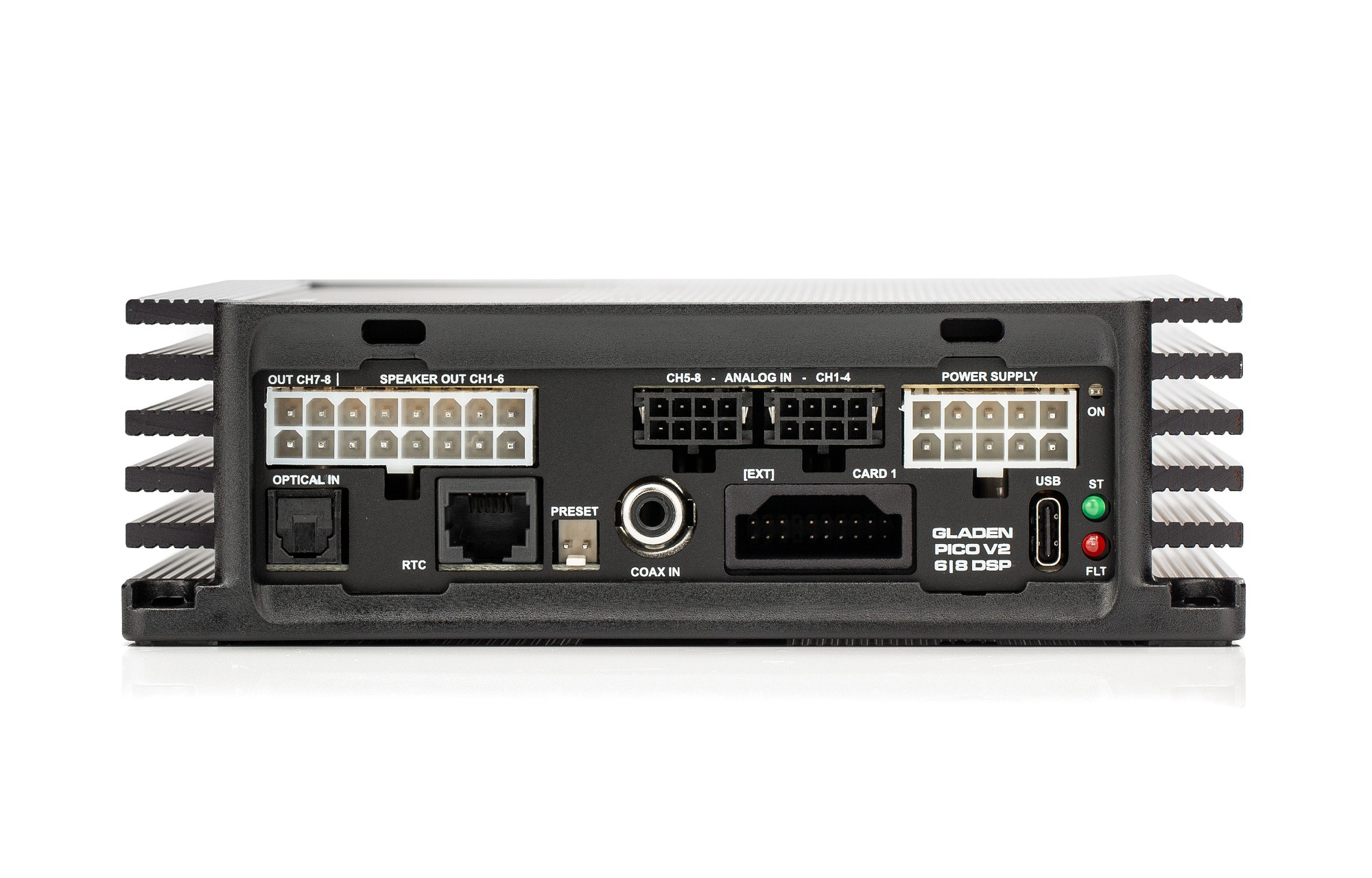 S modelom PICO 6|8 DSP v2 uvádza spoločnosť Mosconi na trh druhú generáciu zosilňovačov PICO DSP. Okrem vylepšenej konektivity boduje nový PICO zvýšeným zvukovým výkonom a lepšou účinnosťou. Všetky konektory sú teraz umiestnené na jednej strane zosilňovača a príslušné spínače nastavenia potrebné na prevádzku v moderných vozidlách sú umiestnené pod magnetickým krytom. Okrem toho sú teraz všetky vstupy schopné pracovať na vysokej aj nízkej úrovni. Požadované nastavenia DSP je možné teraz vykonávať prostredníctvom pripojenia USB-C. Výkonný zosilňovač s DSP je optimalizovaný na použitie s továrenskými rádiami. Osem analógových vstupov až do 30 V, flexibilné smerovanie, 3× vstupný ekvalizér a oneskorenie signálu. S výkonom 4 x 50 W + 2 x 80 W je zosilňovač ideálny pre aktívne a poloaktívne systémy. S dvoma digitálnymi vstupmi (SP-Dif a BT+) a dvoma spracovanými linkovými výstupmi je tesilovač pripravený pre budúcnosť.
