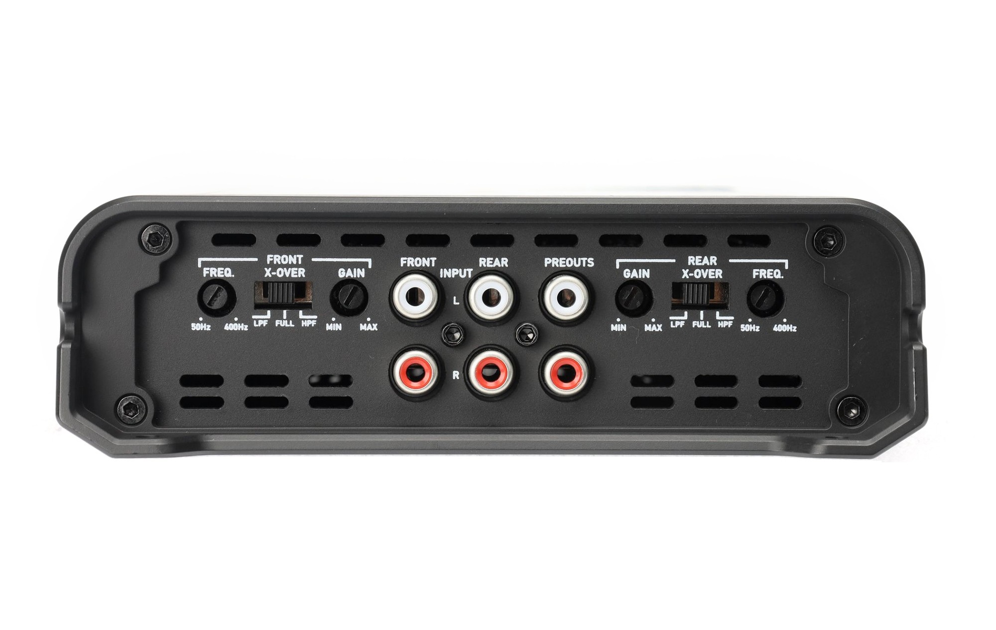 | RMS výkon na 2 ΩRMS výkon pri zaťažení reproduktorov alebo subwoofera na 2 Ω. RMS výkon je stály výkon zosilňovača a je to jeden z najdôležitejších parametrov pri výbere zosilňovača. | 4 x 90 W |