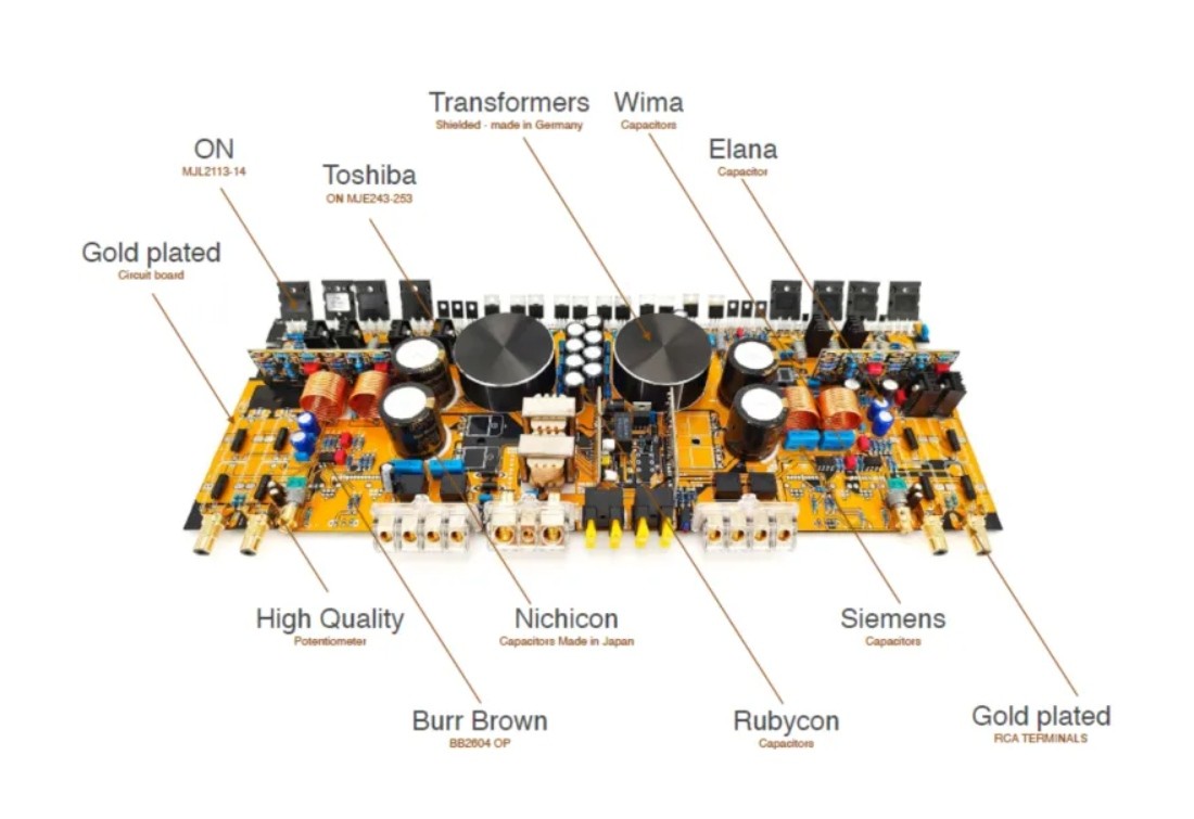 - Špičkové kondenzátory Nichicon, Wima, Siemens a Elana.