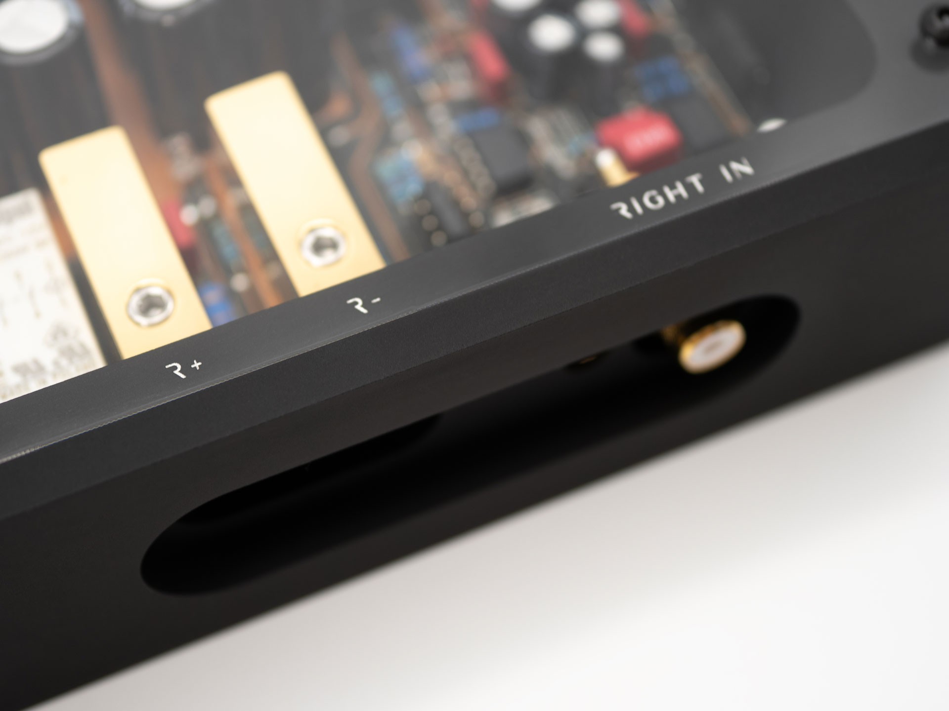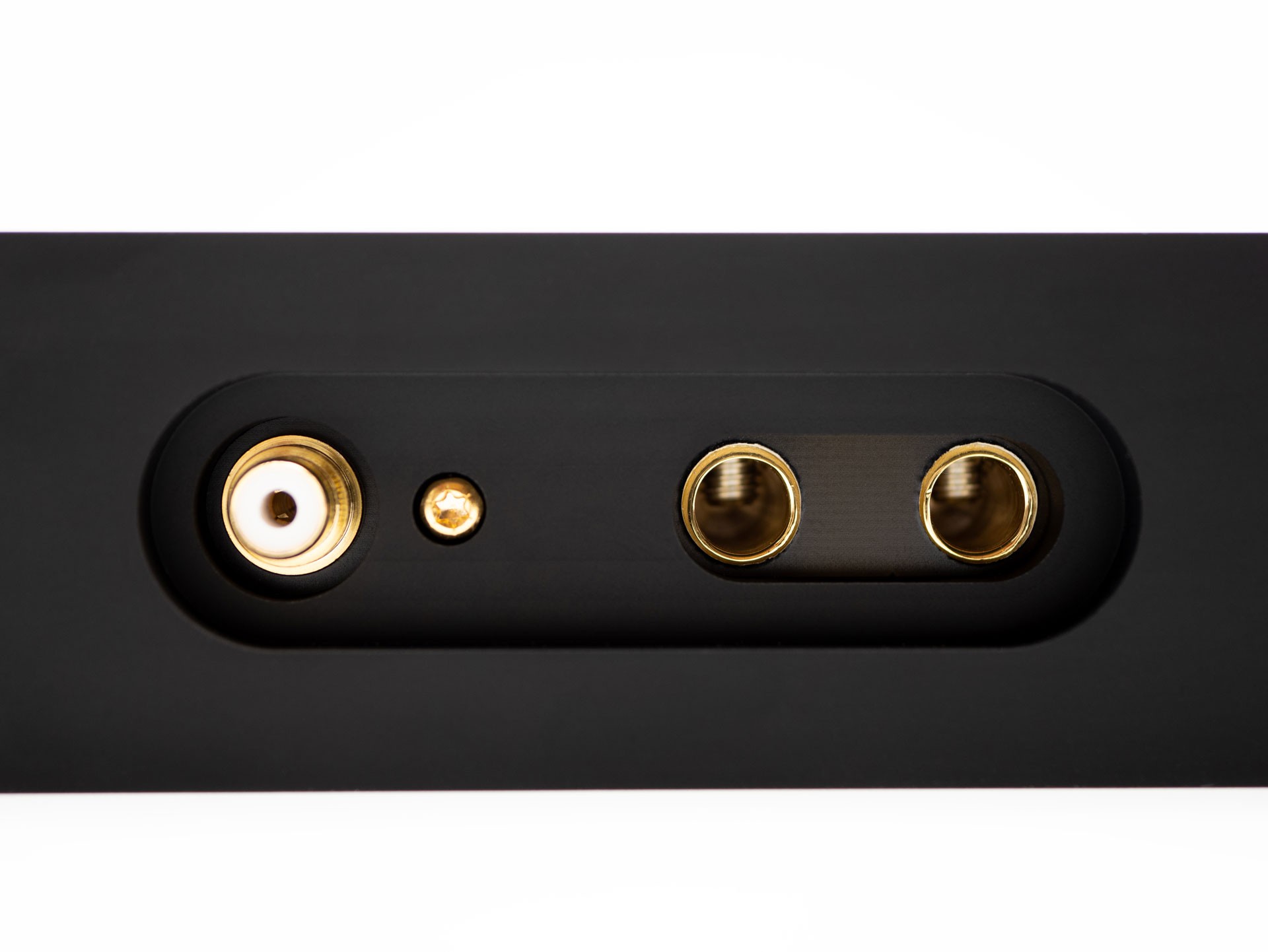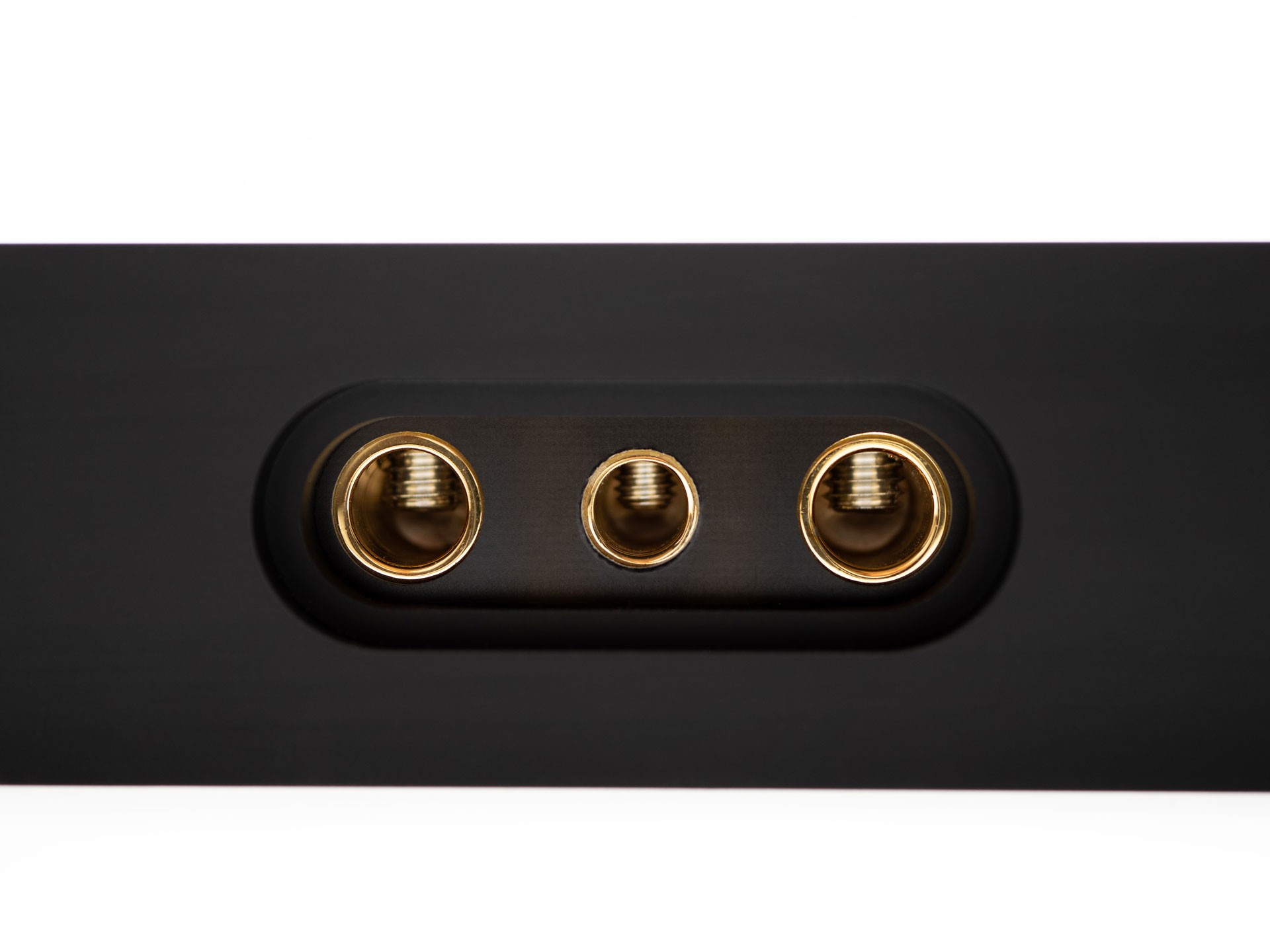 Reproduktorové i napájacie konektory, vrátane vstupu pre remote, sú vyrobené obrábaním z masívnych mosadzných blokov a následne opatrené 24K zlatým pokovením. To zlepšuje elektrickú vodivosť v mieste kontaktu s vodičom a zabezpečuje dlhodobú stabilitu spojenia.