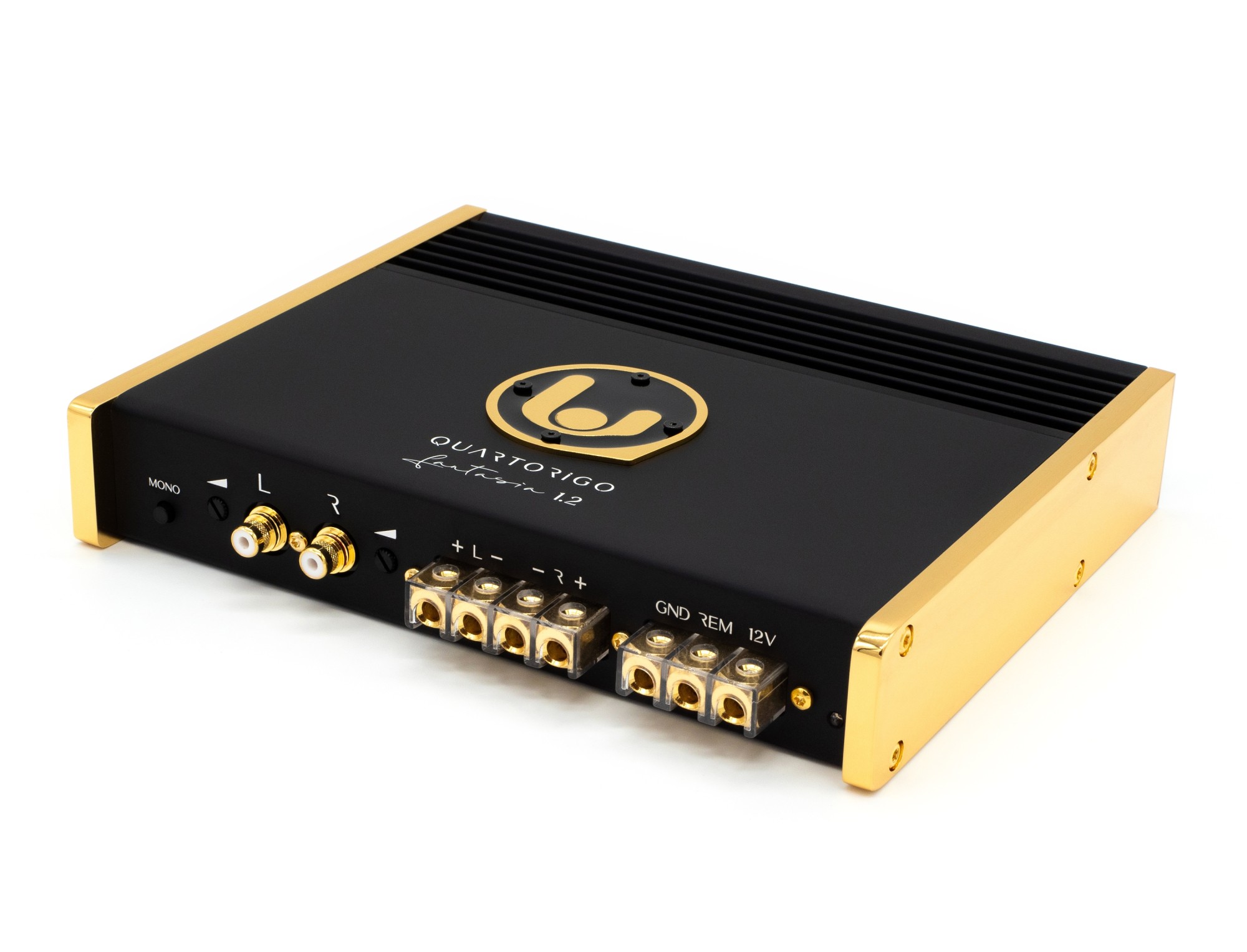 Oproti ostatným zosilňovačom Quartorigo môže Fantasia pôsobiť snáď až konzervatívne. Svojím dizajnom však nadväzuje na svojho tri dekády starého predchodcu, ktorému Fantasia svojim znovuzrodením vzdáva hold. Ladné štíhle krivky, elegantná jednoduchosť a luxusná čierno-zlatá farebná kombinácia - to je skrátka ten pravý taliansky dizajn v plnej svojej kráse. Celkom štyri modely špičkových zosilňovačov, z ktorých si každý vyberie ten najvhodnejší pre náročné sound quality inštalácie. Zosilňovače Fantasia nahrádzajú úspešné modely Heritage a Precision a spájajú ich rozdielne koncepcie triedy A a AB do jedného modelového radu. Vo všetkých dôležitých parametroch, a to najmä vo zvuku, však svojich predchodcov prekonávajú. V ponuke nájdete hneď tri dvojkanálové a jeden štvorkanálový, ktorý je skutočnou lahôdkou. Jeho dva kanály sú triedy A a dva triedy AB, čo predstavuje ideálnu kombináciu pre výškové a stredové, prípadne stredobasové reproduktory. Rovnako ako u väčšiny zosilňovačov Quartorigo sa všetky pripojovacie konektory nachádzajú na hlavnej strane zosilňovača, vrátane ovládania gainu. Žiadne ďalšie ovládacie prvky, ktoré by mohli negatívne ovplyvniť výsledný zvuk, na zosilňovači však nehľadajte. Súčasťou väčšiny zosilňovačov Fantasia je však tlačidlo mono, po stlačení ktorého funguje iba ľavý gain a konektor RCA. Niektoré zosilňovače disponujú aj tlačidlom na prepínanie fázy.