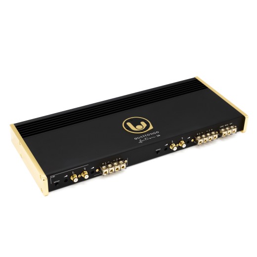 Oproti ostatným zosilňovačom Quartorigo môže Fantasia pôsobiť snáď až konzervatívne. Svojím dizajnom však nadväzuje na svojho tri dekády starého predchodcu, ktorému Fantasia svojim znovuzrodením vzdáva hold. Ladné štíhle krivky, elegantná jednoduchosť a luxusná čierno-zlatá farebná kombinácia - to je skrátka ten pravý taliansky dizajn v plnej svojej kráse. Celkom štyri modely špičkových zosilňovačov, z ktorých si každý vyberie ten najvhodnejší pre náročné sound quality inštalácie. Zosilňovače Fantasia nahrádzajú úspešné modely Heritage a Precision a spájajú ich rozdielne koncepcie triedy A a AB do jedného modelového radu. Vo všetkých dôležitých parametroch, a to najmä vo zvuku, však svojich predchodcov prekonávajú. V ponuke nájdete hneď tri dvojkanálové a jeden štvorkanálový, ktorý je skutočnou lahôdkou. Jeho dva kanály sú triedy A a dva triedy AB, čo predstavuje ideálnu kombináciu pre výškové a stredové, prípadne stredobasové reproduktory. Rovnako ako u väčšiny zosilňovačov Quartorigo sa všetky pripojovacie konektory nachádzajú na hlavnej strane zosilňovača, vrátane ovládania gainu.Žiadne ďalšie ovládacie prvky, ktoré by mohli negatívne ovplyvniť výsledný zvuk, na zosilňovači však nehľadajte. Súčasťou väčšiny zosilňovačov Fantasia je však tlačidlo mono, po stlačení ktorého funguje iba ľavý gain a konektor RCA. Niektoré zosilňovače disponujú aj tlačidlom na prepínanie fázy.