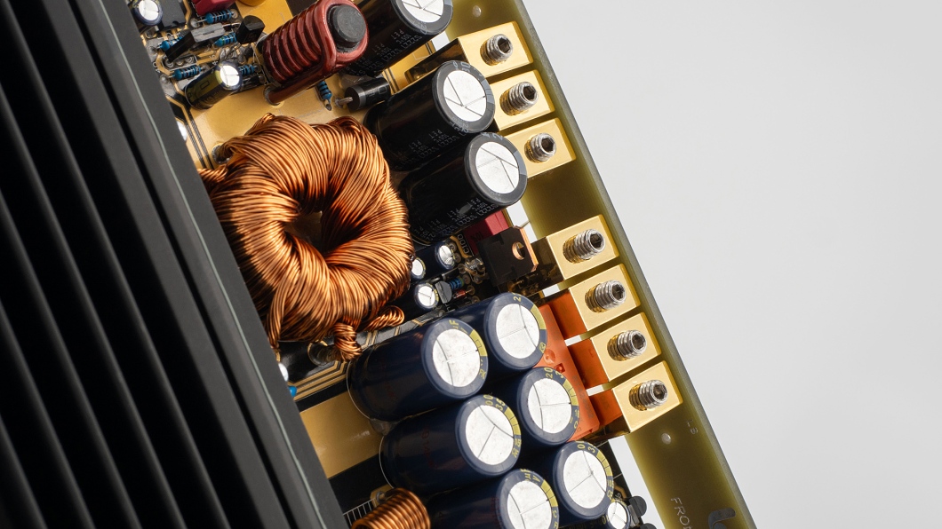 Napájacie transformátory sú nadštandardne dimenzované toroidy s optimalizovanými magnetickými vlastnosťami, ktoré minimalizujú straty a zvyšujú energetickú účinnosť. V kombinácii so pozlátenými vodivými dráhami na doske plošných spojov je zabezpečená dlhodobá stabilita elektrických parametrov, odolnosť voči korózii a konzistentný výkon aj v náročných prevádzkových podmienkach. O ochranu systému sa stará robustná poistka typu ANL, ktorá zaručuje maximálnu prevádzkovú bezpečnosť pri zachovaní vysokej spoľahlivosti.