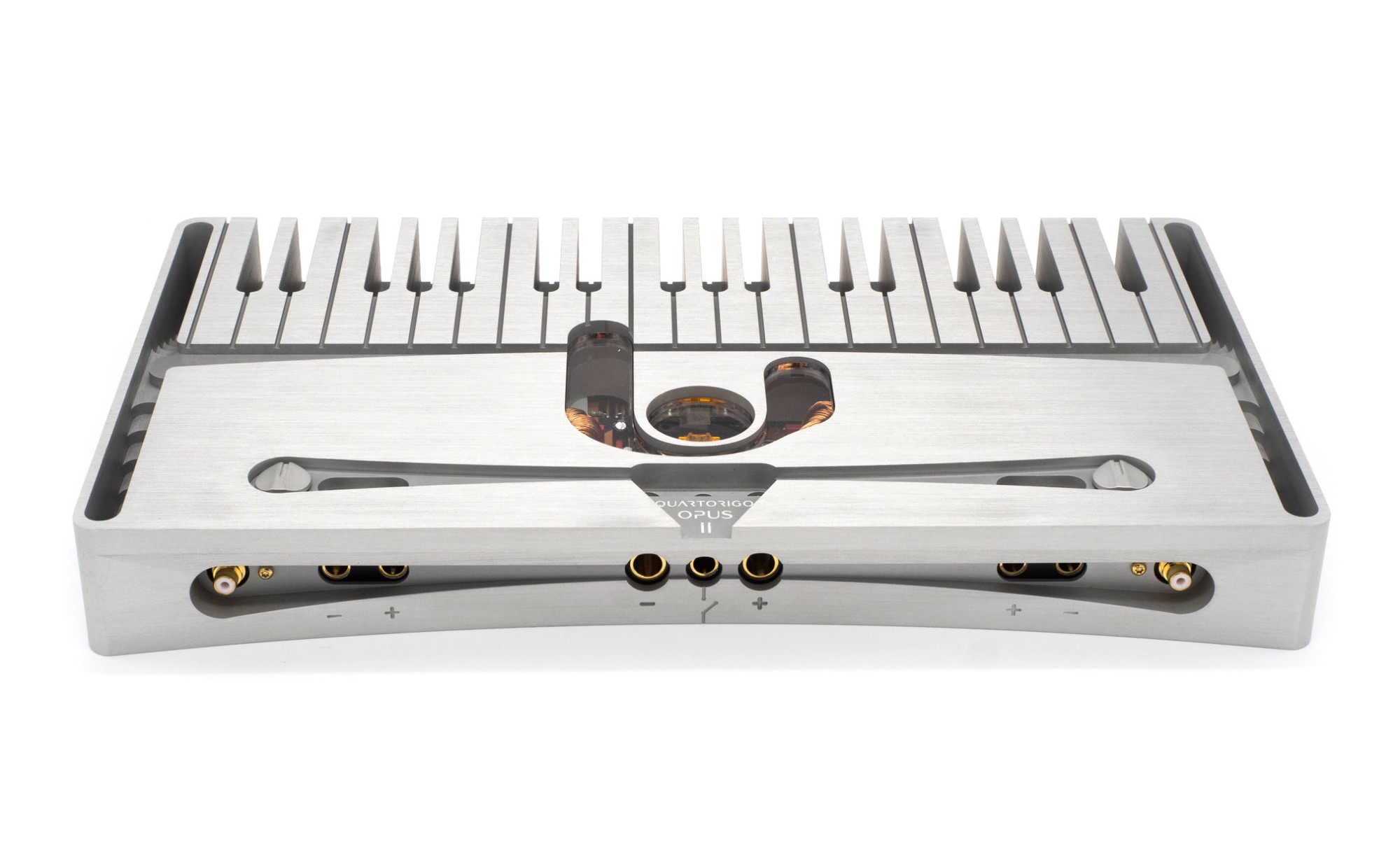 Dizajn zosilňovačov druhého najvyššieho radu Opus bez ostychu demonštruje, že na vzhľade a dôraze aj na tie najmenšie detaily jednoducho záleží. Rovnako ako socha je aj Opus vytvorený z jediného bloku hmoty, vytesávaného dlhé hodiny nesmierne zložitým a nákladným procesom. Nejde však o obyčajné oku lahodiace riešenie. Šasi zosilňovačov Opus bolo skutočne navrhnuté a skonštruované vo vlastnej réžii tak, aby poskytovalo najlepšiu možnú úroveň odvodu tepla v pomere k veľkosti, čo umožňuje dosiahnutie takého výkonu a zvukovej dokonalosti, aké sú pri iných riešeniach úplne nemysliteľné. Pre milovníkov hudby je však dôležité aj to, čo sa skrýva pod týmto jedinečným obalom. Bolo vynaložené enormné úsilie a nespočet týždňov testovania správania a interakcií medzi niekoľkými sadami komponentov zvažovaných pre zosilňovač Opus. Tie sú z akéhokoľvek pohľadu extrémizáciou pevného presvedčenia inžinierov z Quartorigo, že okrem elektrických hodnôt a špecifikácií sa každý kondenzátor, každý tranzistor, mosfet alebo dokonca feritové jadro výkonového transformátora líšia jeden od druhého a to aj v závislosti od ich výrobcu. Kombinácia správnych vlastností, testovanie všetkých interakcií medzi akýmikoľvek súčiastkami vo vnútri dosky plošných spojov je skutočne najviac stresujúcou, časovo náročnou, ale zároveň veľmi vďačnou úlohou pre šikovné ruky vývojárov. Výsledkom je skutočné plnokrvné duo pre milovníkov hudby par excellence: Opus I pre svoje detaily získané neprekonateľnou polarizáciou triedy A, Opus II pre svoju vyváženosť a kontrolu pri akomkoľvek zaťažení. Charakter a osobitosť robí z týchto zosilňovačov niečo jedinečné, niečo špeciálne, ezoterickú a fascinujúcu zmes. Ich zvuk vás dojme natoľko, že nebudete chcieť prestať počúvať hudbu. A buďte si úplne istí, že mráz prechádzajúci po vašom chrbte aj husia koža na rukách vás bude sprevádzať po celý čas počúvania hudby.