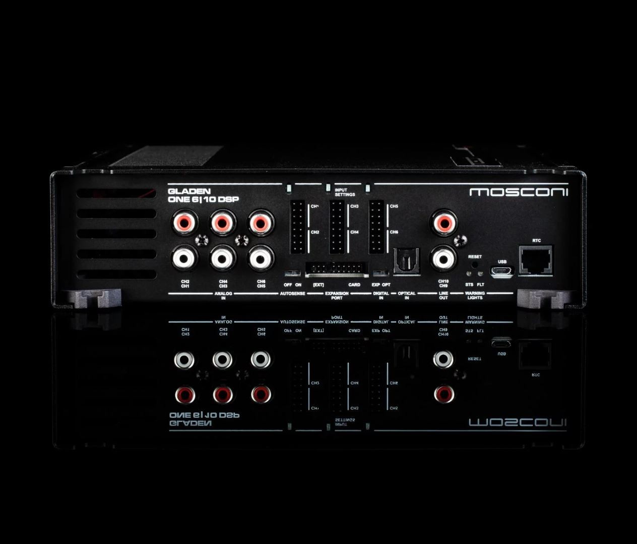 Nový Mosconi Gladen ONE 4|8 DSP je univerzálny 4kanálový DSP zosilňovač v technológii triedy AB. Je to ideálny zosilňovač pre reproduktorové systémy v kombinácii s výkonnými subwoofermi. Okrem inovovanej optiky má tento 4kanálový zosilňovač 8kanálový DSP procesor s najnovším softvérom. Nový rad zosilňovačov ONE Line je teraz tiež kompatibilný so softvérom GUI 3.xx a ponúka plnú funkčnosť. Sekcia koncového zosilňovača na výstupnej strane zostala analógová, aby nakazila poslucháčov teplým a výkonným zvukovým obrazom. Všetky reproduktorové výstupy sú samozrejme premostiteľné. Tu sú užívateľovi otvorené takmer neobmedzené konfigurácie. So svojím výkonom 4 x 130 wattov RMS je ONE 4|8 DSP dostatočne vybavený pre veľké 2pásmové riešenia aj pre kompletné viackanálové koncepty. Pre rozšírenie systému ponúka integrovaný 8kanálový DSP dva ďalšie stereo výstupy. Mosconi ONE 4|8 DSP je vybavený pripojením reproduktorov Molex. To nielen zaisťuje čistú kabeláž, ale je tiež kompatibilný so všetkými sadami káblov Plug & Play z programu Gladen SoundUp.