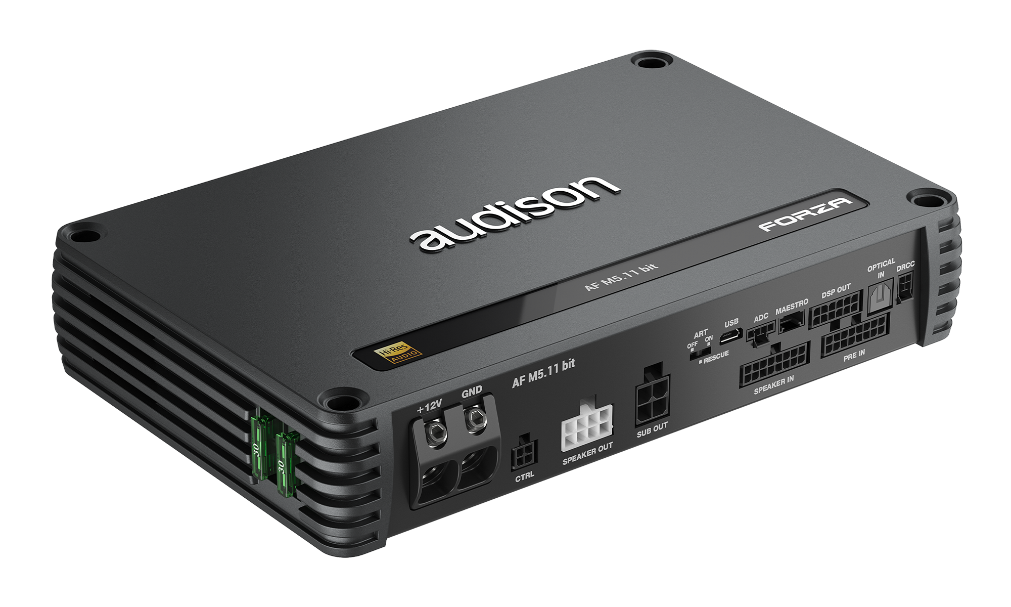 Audison AF M5.11 bit z najnovšej generácie Forza zosilňovačov z roku 2022 sa môže pochváliť 5 vysoko vernými zosilnenými kanálmi 100W x 4 + 400W @ 4Ω*, 150W x 4 + 600W @ 2Ω s audiofilským zvukom vďaka najnovšej generácii technológie Audison. Vyššia spínacia frekvencia, strmšie filtrovanie a komponenty s vyššou toleranciou poskytujú zvuk nad rámec očakávania triedy D – v úžasne kompaktnom balení! To je kombinované s natívnym DSP pracujúcim na 24 bit/96 kHz, rozširujúcim zvukové pásmo až na 40 kHz a získavaním vytúženej certifikácie High-Resolution. Zosilňovač je možné aj mostíkovať, čo umožní flexibilný a silný výkon. Podpora funkcie Absolute Volume Audison B-CON zaručuje maximálnu bitovú hĺbku a to aj pri bezdrôtovom pripojení.