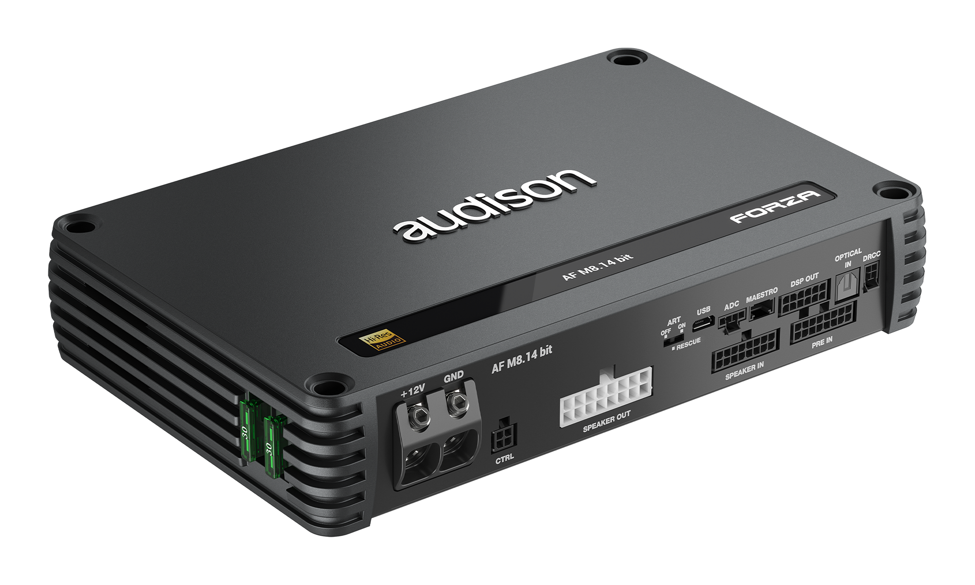 AF M8.14 bit sa môže pochváliť ôsmimi vysoko vernými zosilnenými kanálmi 90 W x 8 @ 4Ω*, 140 W x 8 @ 2Ω* s audiofilným zvukom najnovšej generácie technológie Audison D-Class. Vyššia spínacia frekvencia, strmšia filtrácia a komponenty s vyššou toleranciou poskytujú zvuk nad očakávania triedy D - v úžasne kompaktnom balení! To všetko v kombinácii s natívnym DSP pracujúcim s frekvenciou 24 bitov/96 kHz, rozširujúcim zvukové pásmo až na 40 kHz a získavajúcim prestížnu certifikáciu High-Resolution. Výsledkom premostenia párov kanálov je výkon 280 W x 4 @4Ω*, ktorý zaručuje flexibilný a silný výkon. Podpora funkcie absolútnej hlasitosti Audison B-CON zaručuje maximálnu bitovú hĺbku, a to aj pri bezdrôtovom pripojení!