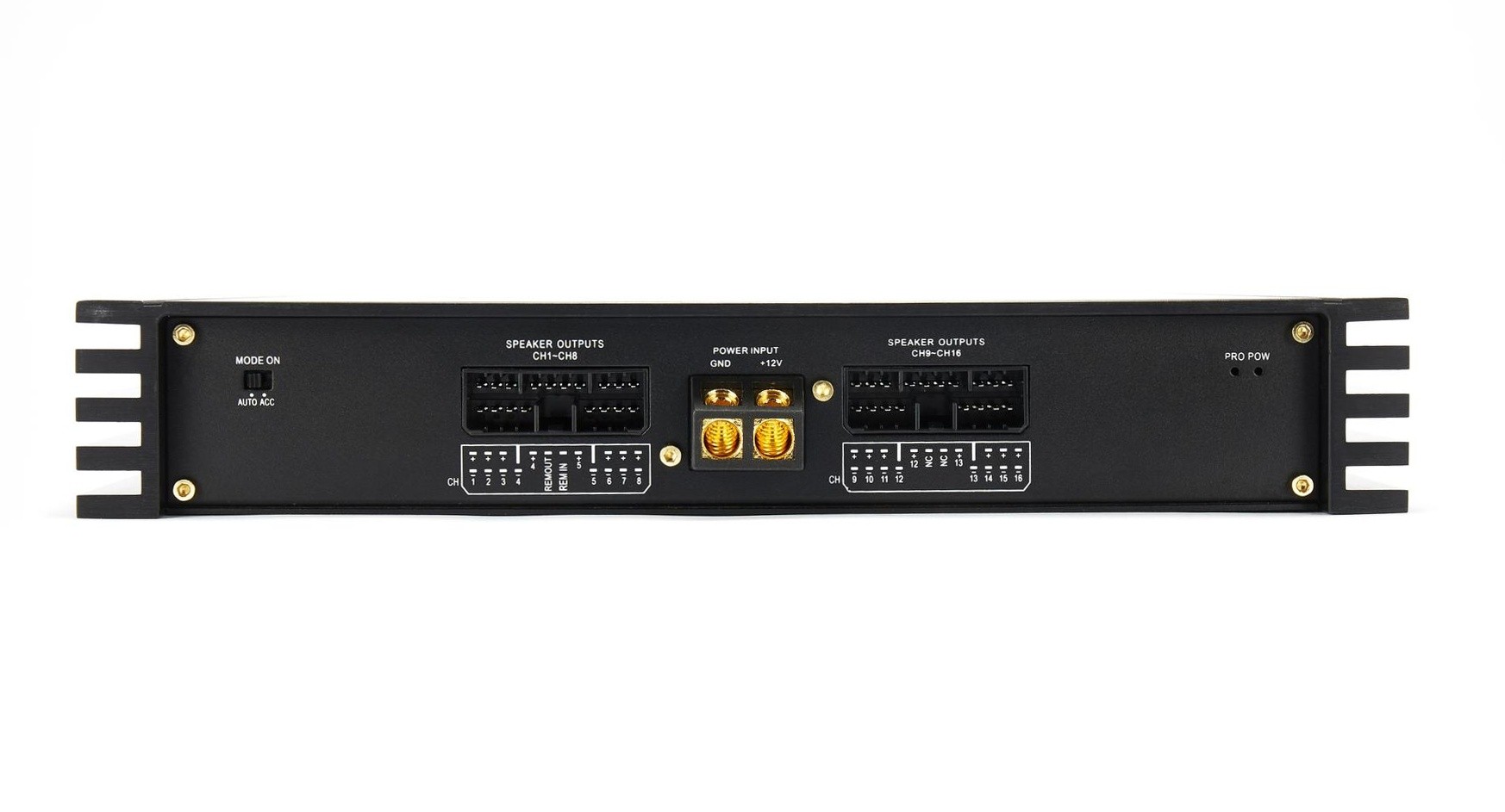 - Výstupy: 16 x low level (RCA), 16 x reproduktorový.