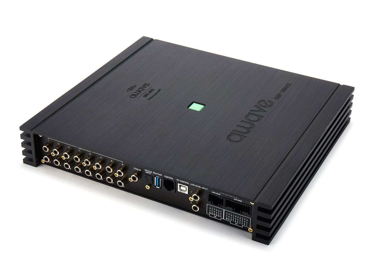 Awave DSP-16MAX je 16-kanálový zosilňovač s integrovaným DSP procesorom, ktorý kombinuje kvalitný zvuk, prepracovaný softvér DSP procesora a jednoduchú integráciu na továrenské systémy. Zosilňovač ponúka vysoký výkon 16 x 80 W RMS a bohatú konektivitu, vďaka čomu je zosilňovač vhodný aj pre zložité továrenské príplatkové systémy. Tá zahrnuje 16 vysokoúrovňových vstupov pre pohodlné pripojenie na originálne autorádiá, 2 RCA vstupy alebo optický a koaxiálny vstup. DSP procesor disponuje vysokokvalitným čipom ADAU, prevodníkmi signálu AKM a vzorkovacou frekvenciou 192 kHz. V programe DSP procesora je možné intuitívne nastaviť gain, časové korekcie, pásmové priepuste, filtre, 31-pásmový parametrický ekvalizér a ďalšie dôležité funkcie. K zosilňovaču je tiež možné dokúpiť diaľkový ovládač pre nastavenie celkovej hlasitosti, hlasitosti subwoofera a výberu presetu. Zosilňovač je kompatibilný s Hi-res súbormi vďaka rozšírenej frekvenčnej odozve. Moderná digitálna platforma zaisťuje vysokú 84% účinnosť, dostatočný výkon aj pre pokročilé reproduktory a kompaktné rozmery.