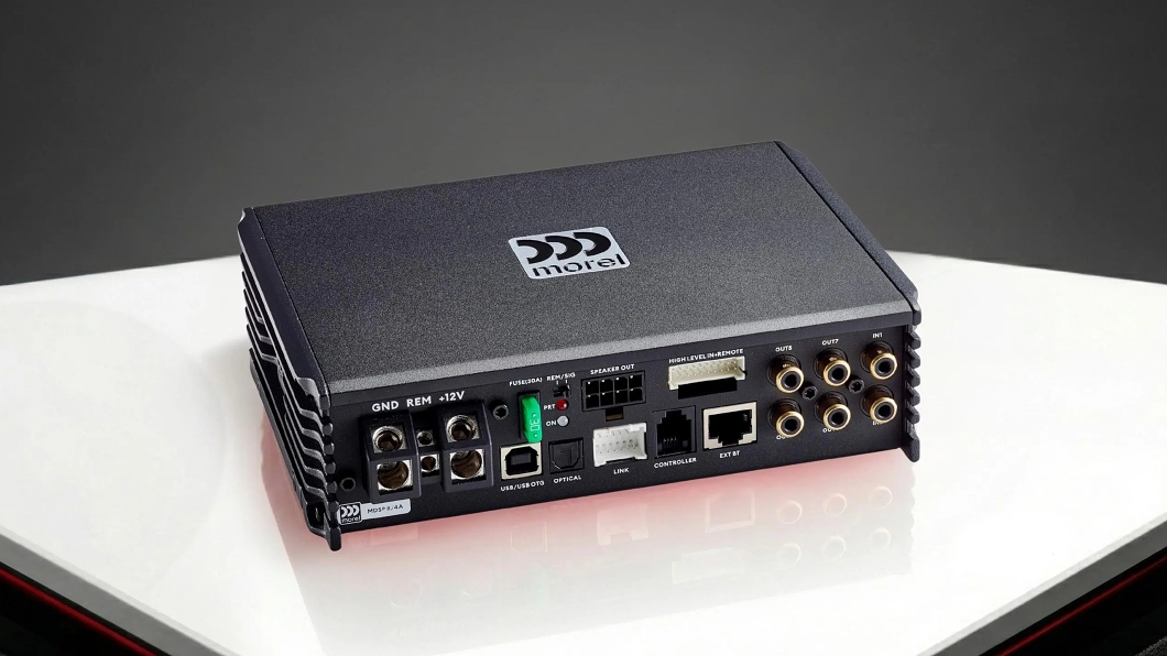 Rada zosilňovačov Morel MDSP predstavuje ďalší krok vo vývoji značky Morel v oblasti automobilového audia. Vznikla ako odpoveď na realitu moderných vozidiel, kde sa čoraz častejšie stretávame so zložitými továrnymi audiosystémami, dátovou komunikáciou, start-stop systémami a obmedzeným inštalačným priestorom. MDSP 8/4A bol navrhnutý tak, aby v jednom kompaktnom zariadení ponúkol všetko, čo dnes kvalitná integrácia vyžaduje – dostatok výkonu, špičkovú zvukovú kvalitu, plnohodnotný DSP procesor a maximálnu flexibilitu pri inštalácii. MDSP 8/4A cieli ako na profesionálne integrácie do OEM systémov, tak na náročné inštalácie, kde je kladený dôraz na čistotu signálu, presné ladenie a dlhodobú spoľahlivosť. Vďaka vysokej výkonovej rezerve, kvalitným vnútorným komponentom a premysleným integračným funkciám tvorí pevný základ pre audio systémy prakticky akéhokoľvek rozsahu. Napriek svojim schopnostiam zostáva MDSP 8/4A veľmi kompaktný. Vďaka tomu ho možno ľahko inštalovať aj do priestorovo obmedzených miest moderných vozidiel. Zosilňovač tak ponúka ideálnu kombináciu výkonu, funkcionality a inštalačnej flexibility.