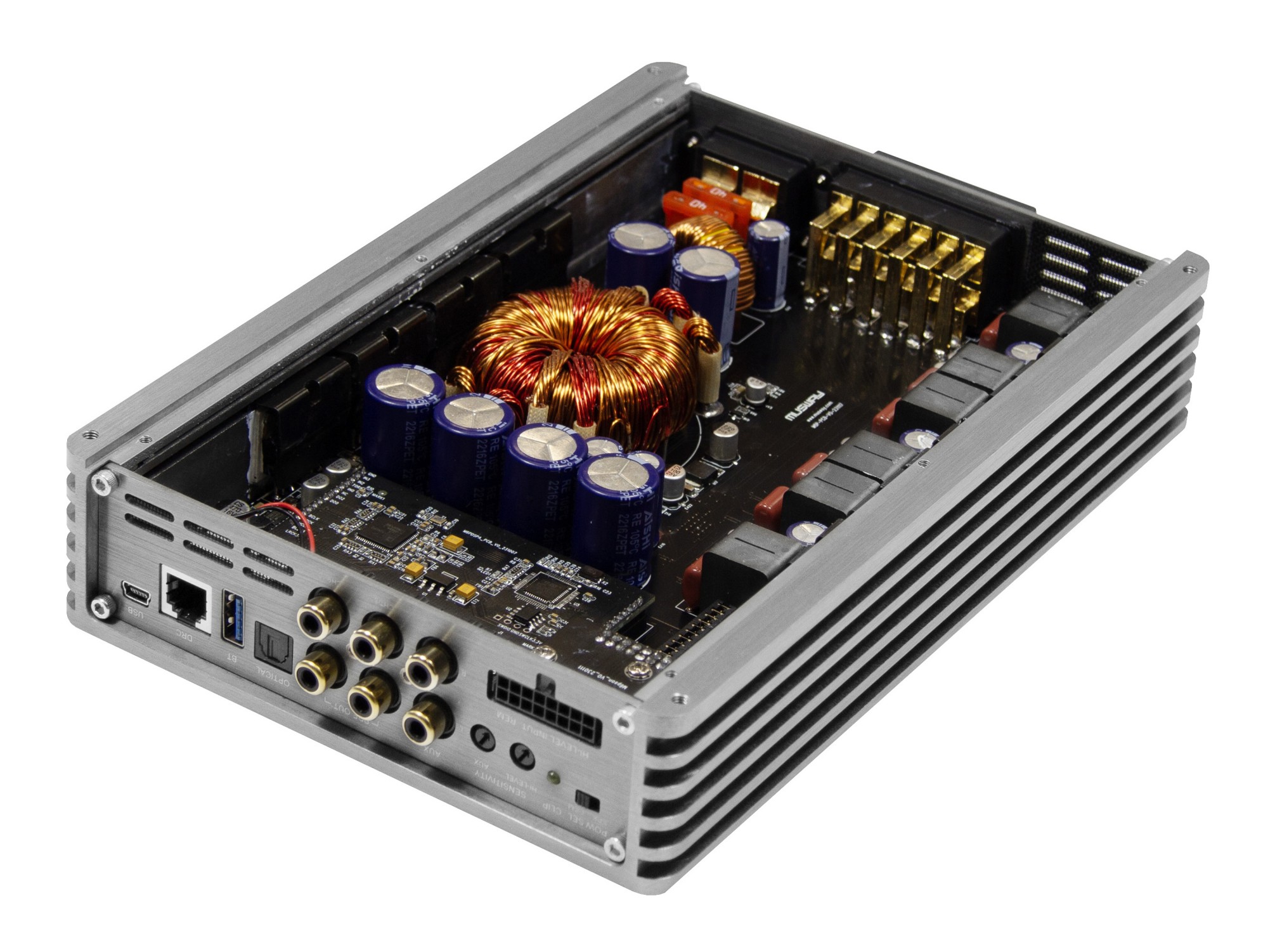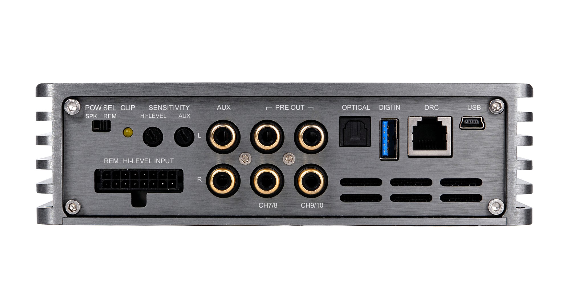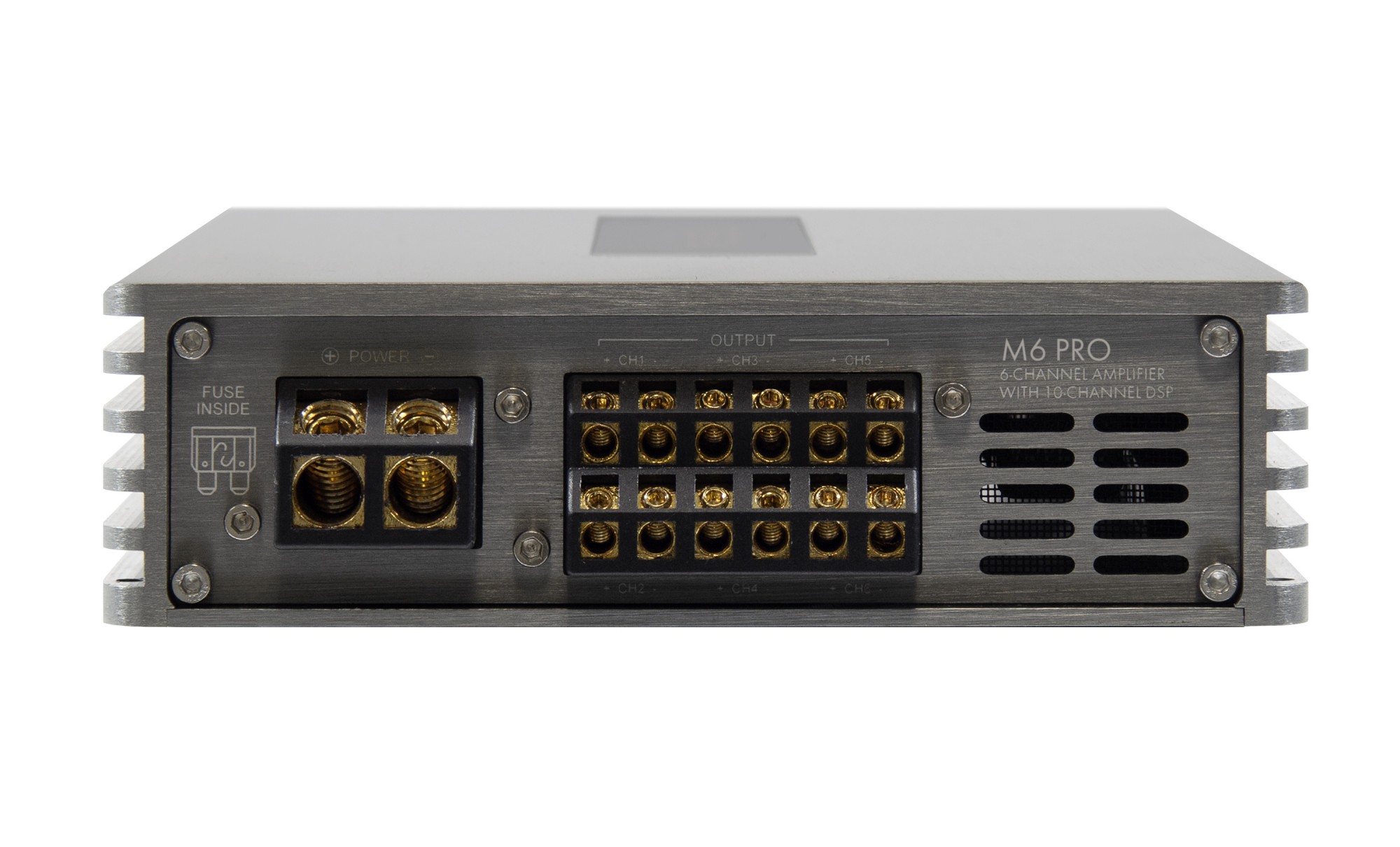 6kanálový zosilňovač s DSP procesorom, 6 × 120 / 200 W RMS (4 / 2 Ω), 3 × 400 W RMS v mostíku, trieda D, vstupy: 6 × high-level, 6 × RCA, AUX, optický SPDIF, výstupy: 4 × RCA (DSP)