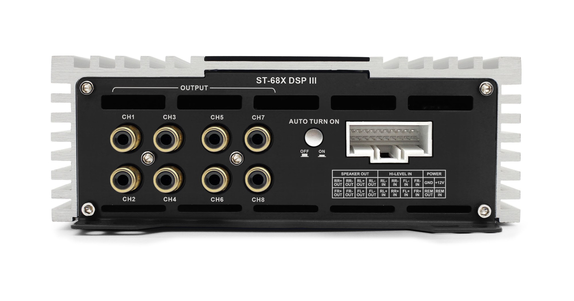 - 4kanálový zosilňovač triedy AB s 8kanálovým DSP procesorom.