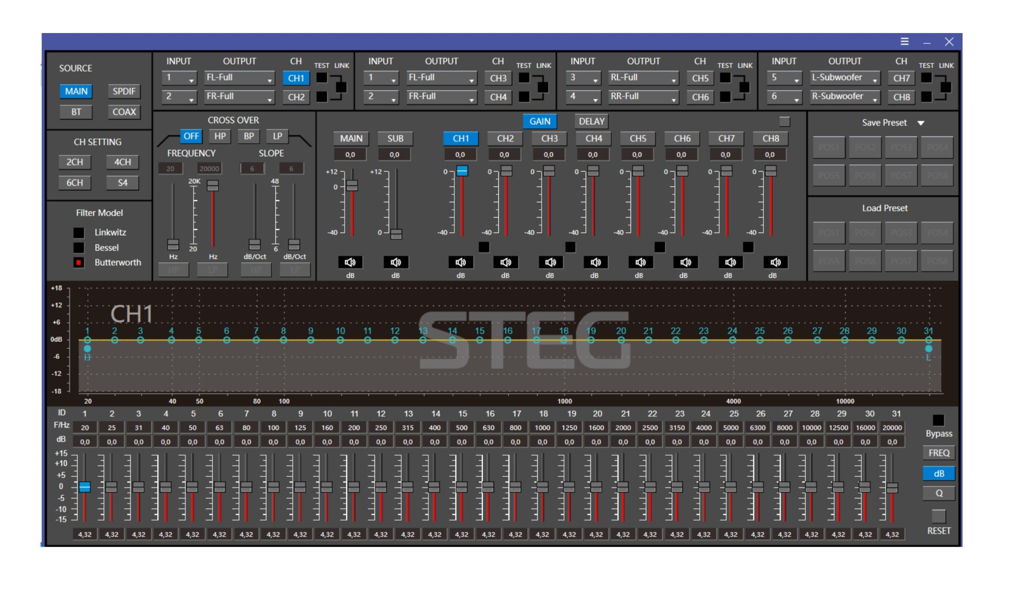 Vylepšené zosilňovače STEG s integrovaným DSP procesorom, ktoré prešli roky a roky tvrdým vývojom, hodinami a hodinami posluchových testov, pri ktorých sa vyberajú tie najlepšie materiály a zoskupia sa potom do jediného produktu. SDSP 6 bol navrhnutý oddelením výskumu a vývoja spoločnosti GTTrading, aby bola dosiahnutá maximálna kvalita zvuku v OEM integračných aplikáciách. Výkonný softvér pre ovládanie demonštruje schopnosť spravovať jednotku s viacerými zosilňovačmi v jednom kompaktnom zariadení. Vďaka inovatívnemu zosilňovaču je možné získať výkon celkom 600 W, navyše s 2 digitálnymi výstupmi pre pohon ďalšieho externého zosilňovača. Vyvinutý výkonný softvér vám umožní nastaviť na jednej stránke všetky funkcie DSP vo vnútri zosilňovača s jednoduchosťou a intuitivitou, aby ho mohli používať aj tí menej skúsení. Možnosť použitia v offline režime, takže môžete kedykoľvek vytvoriť konfiguráciu pri stole a následne ju vložiť do DSP.