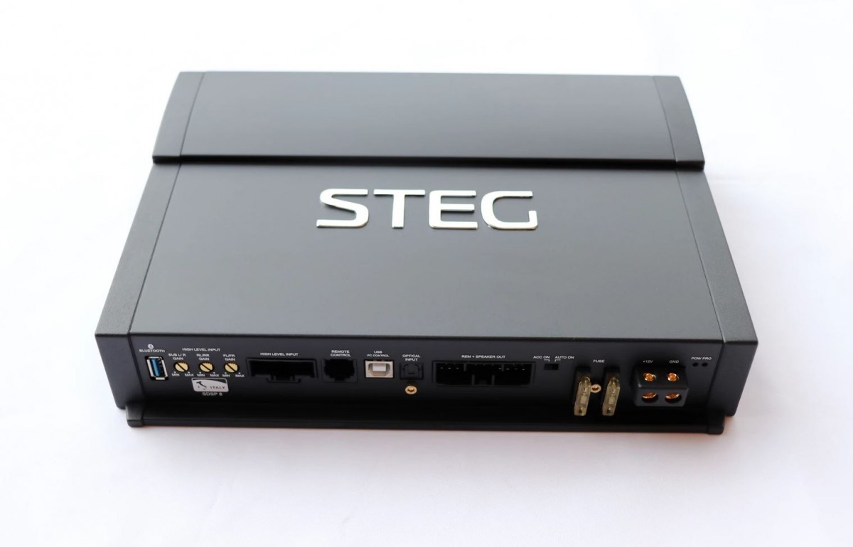 Vylepšené zosilňovače STEG s integrovaným DSP procesorom, ktoré prešli roky a roky tvrdým vývojom, hodinami a hodinami posluchových testov, pri ktorých sa vyberajú tie najlepšie materiály a zoskupia sa potom do jediného produktu. Nový SDSP 8 je dokonalým v reprodukcii zvuku a nekompromisnom dizajne, stačí totiž odstrániť originál zosilňovač a nahradiť ho týmto novým zosilňovačom STEG. Okamžite oceníte radikálnu zmenu kvality zvuku bez toho, aby ste museli meniť reproduktory. Je to ďalší produkt, ktorý sa chystá stať revolúciou vo svojej triede. SDSP 8 bol navrhnutý oddelením výskumu a vývoja spoločnosti GTTrading tak, aby bola dosiahnutá maximálna kvalita zvuku v OEM integračných aplikáciách. Výkonný softvér pre ovládanie demonštruje schopnosť spravovať jednotku s viacerými zosilňovačmi v jednom kompaktnom zariadení. Vďaka inovatívnemu zosilňovaču je možné získať výkon celkom 800 W, navyše s 2 digitálnymi výstupmi pre pohon ďalšieho externého zosilňovača. Vyvinutý výkonný softvér vám umožní nastaviť na jednej stránke všetky funkcie DSP vo vnútri zosilňovača s jednoduchosťou a intuitivitou, aby ho mohli používať aj tí menej skúsení. Možnosť použitia v offline režime, takže môžete kedykoľvek vytvoriť konfiguráciu pri stole a následne ju vložiť do DSP.