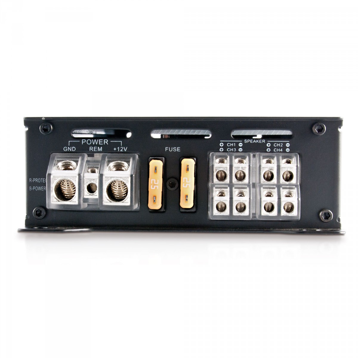| RMS výkon na 4 ΩRMS výkon pri zaťažení reproduktorov alebo subwoofera na 4 Ω. RMS výkon je stály výkon zosilňovača a je to jeden z najdôležitejších parametrov pri výbere zosilňovača. | 4 x 80 W |