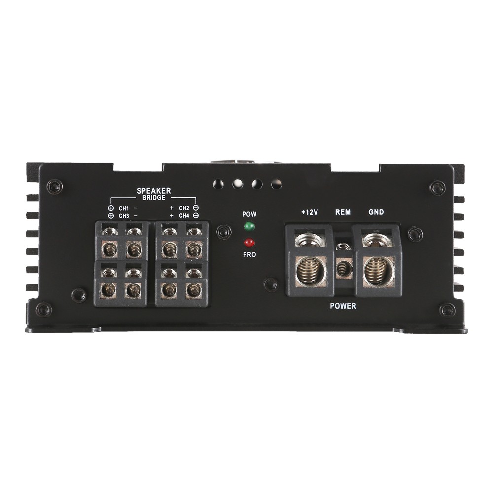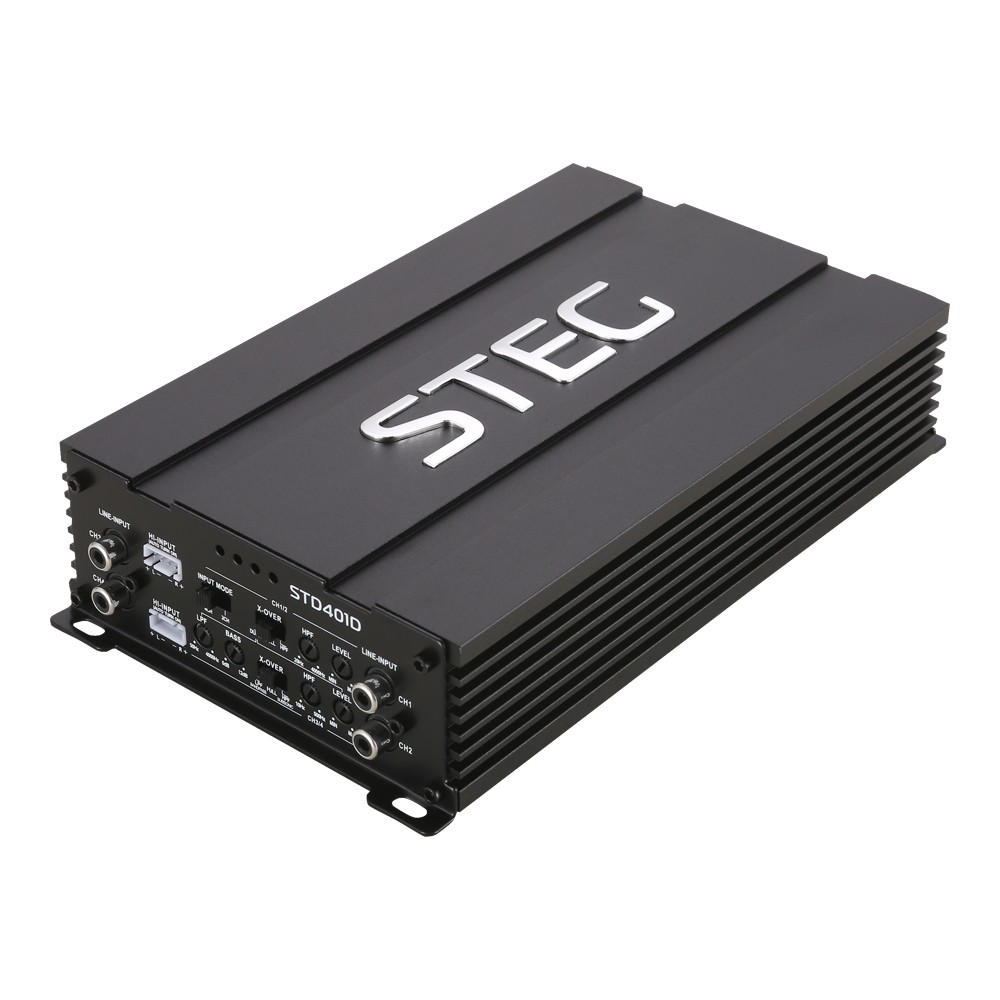 4kanálový zosilňovač, 4 x 75 / 2 x 200 W RMS (4 Ω) / 4 x 120 W RMS (2 Ω), trieda D