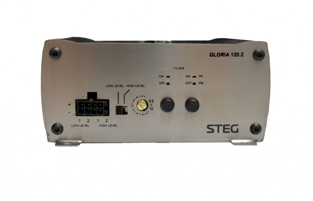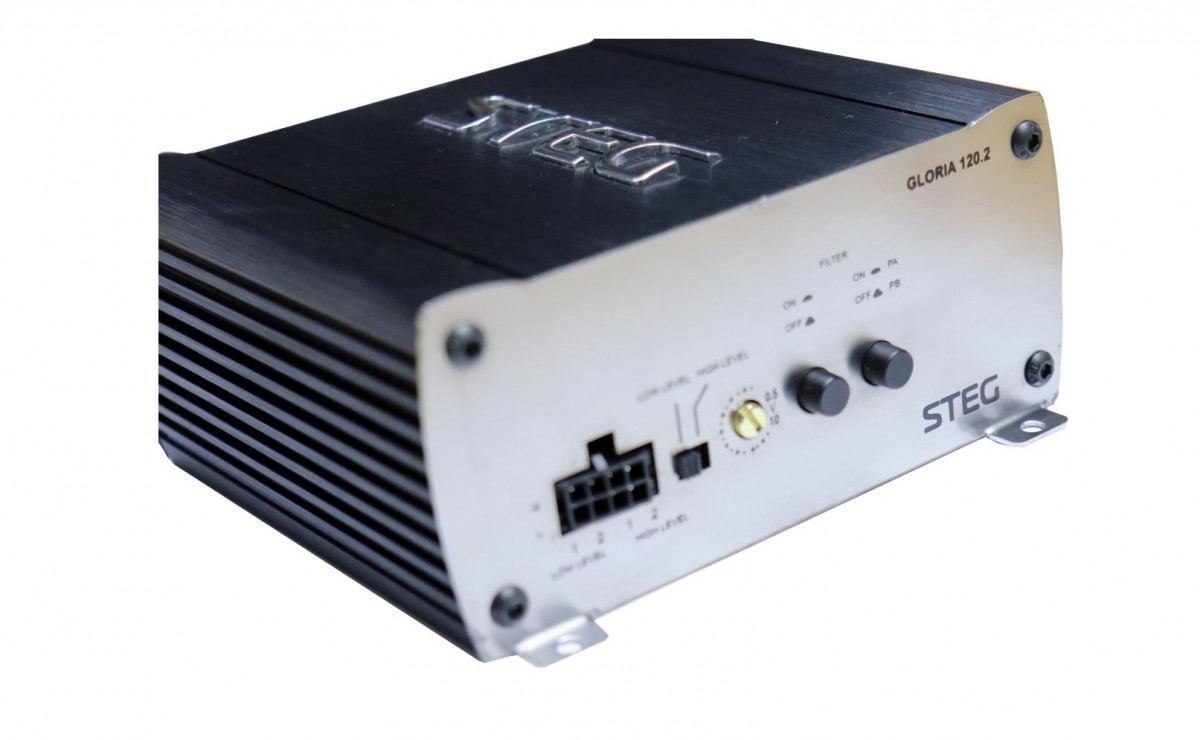Najnovší prírastok od Stegu – v roku 2020 predstavený zosilňovač Gloria 120.2, ktorý bol navrhnutý a vyrobený 100% v Taliansku – jeden z najvýkonnejších malých zosilňovačov na svete s tonálnymi vlastnosťami porovnateľnými s triedou AB. Výkon 2 x 100 W RMS na 4 ohmy je riadený mikroprocesorom, ktorý okrem riadenia plní funkciu teplotnej ochrany, ochrany proti nízkemu napätiu a ochrany proti skratu. Je tiež poverený riadením napájacích mosfetov. Má možnosť prepínať na nízku alebo vysokú úroveň s automatickým zapnutím, keď príde zvukový signál.