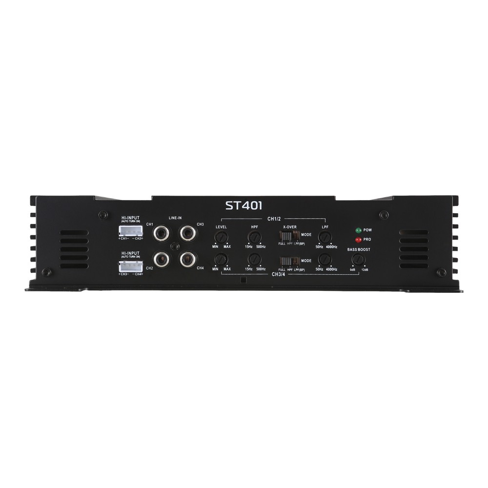4kanálový zosilňovač, 4 x 90 / 2 x 260 W RMS (4 Ω), 4 x 130 W RMS (2 Ω), trieda AB